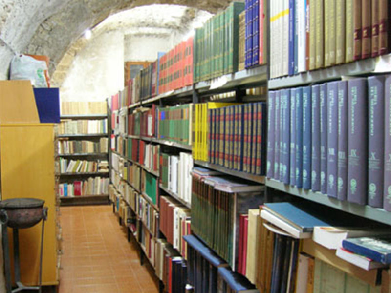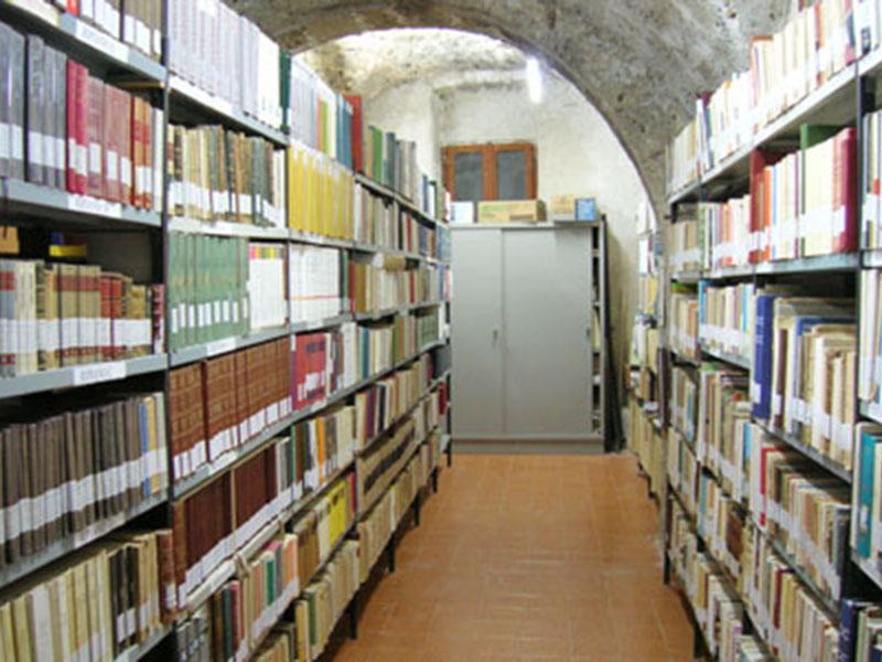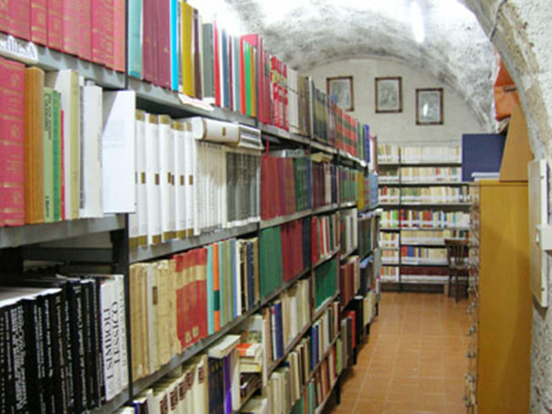 Dal chiostro, sul lato ovest, si visita la Biblioteca conventuale, che dal 1979 è stata sistemata con nuove scaffalature nei locali dell'ex legnaia, cantina e dispensa, restaurati con nuova pavimentazione, pur lasciando scoperte le volte a botte, formate con blocchi di tufo. Su scaffalatura di metallo sono sistemati i circa 20.000 volumi ed opuscoli. Vi sono cinquecento manoscritti e moltissime opere riguardanti l'Abruzzo. Pregevoli sono i due Salteri pergamenacei del secolo XV, ricche di miniature. La creazione della Biblioteca risale alla fine del secolo XV. Nel 1811 per ordine regio furono trasferiti a Napoli alla Biblioteca nazionale molti codici, incunaboli e volumi preziosi. I volumi salvati anche dalla seconda soppressione del 1866 costituirono la Biblioteca, che, specialmente dopo la seconda guerra mondiale, è stata arricchita dall'acquisto e dalla donazione di volumi, manoscritti e documenti preziosi per la storia di Tocco nei secoli XVIII e XIX. Vi si conserva anche una copia del Chronicon Casauriense, riproduzione in fototipia dell'originale che si conserva nella Biblioteca di Parigi.