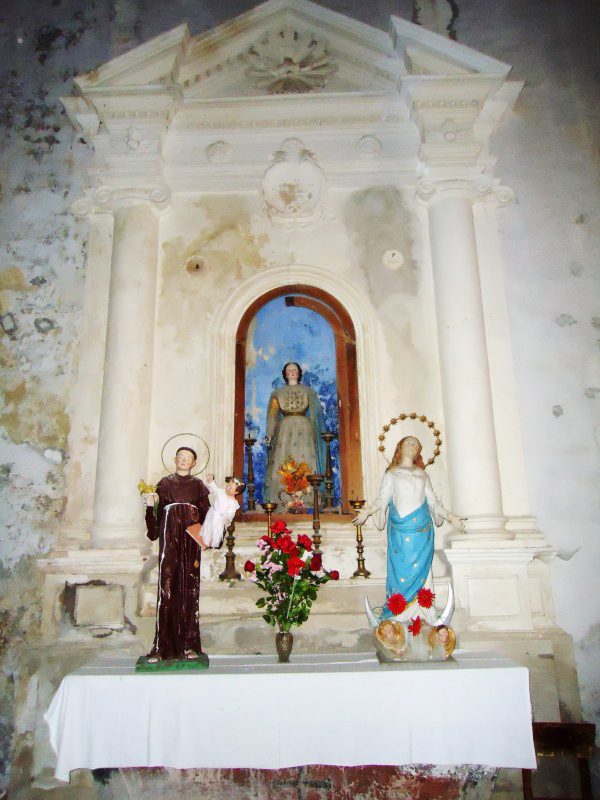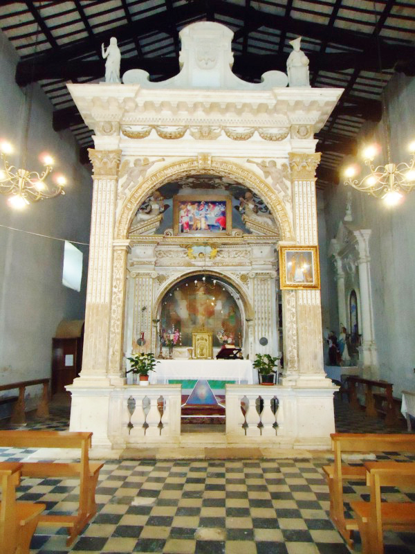 Come lo storico teramano Nicola Palma riferisce, da alcuni documenti dell’epoca risulta che venne eretta nel 1612, costruita attorno ad un’edicola dedicata alla SS. Trinità cui all’epoca vennero attribuiti dei miracoli. Ristrutturata intorno agli anni settanta del secolo scorso, si presenta con un’austera facciata e copertura a capanna sorretta da capriate in legno. Sia il portale che la porta laterale sono in pietra, sormontati da un timpano spezzato con al centro una piccola edicola. L’architrave del portale reca incisa la scritta “TRINITAS EST”, mentre su quello della porta laterale si legge “TRES PERSONAE”. Sulla parte posteriore, in corrispondenza di quella che fu l'abitazione del parroco, ormai crollata, si erge un campanile a vela asimmetrico dove trovano posto tre campane. L’interno è a navata unica, al centro della quale è conservato il piccolo santuario ornato di colonne, lesene, archi, statue in pietra, stucchi e decorazioni. Nella nicchia frontale si trova l’antico affresco avente al centro la SS. Trinità, ai cui lati si trovano le figure della Madonna e di San Giovanni. Sull'altare, ai lati dell'affresco sono incastonate due placche raffiguranti la Croce delle Indulgenze fatte coniare nel 1901 da Papa Leone XIII. In fondo alla navata si trova un altare con al centro un affresco raffigurante una Madonna con Bambino sotto cui, in un cartiglio di stucco, si legge “D O M 1696”; una mattonella appartenuta al cornicione è appoggiata su di esso e reca la data 1738. L’arredo della chiesa si completava con numerosi dipinti, i cui originali sono oggi custoditi in Curia o nel Convento dei Cappuccini di Campli; nella chiesa vengono comunque conservate delle copie, tra cui una Ultima Cena, opera di un pittore marchigiano di fine cinquecento, una Annunciazione in due dipinti, copiata da Guido Reni, un quadro devozionale con S. Atanasio su cui si legge la data 1607. Sull’altare laterale, costruito in tempi più recenti in corrispondenza di un altro ingresso laterale murato, trovano posto tre statue votive. Documenti dell’epoca riportano che nel 1675 un buon numero di briganti che scorrazzavano sui monti abruzzesi, tra cui il terribile Sante di Giovanni Lucidi detto Santuccio di Froscia, usufruirono dell’amnistia offerta dal governo spagnolo a condizione di militare nell’esercito spagnolo, confessando i propri misfatti proprio in questa chiesa.