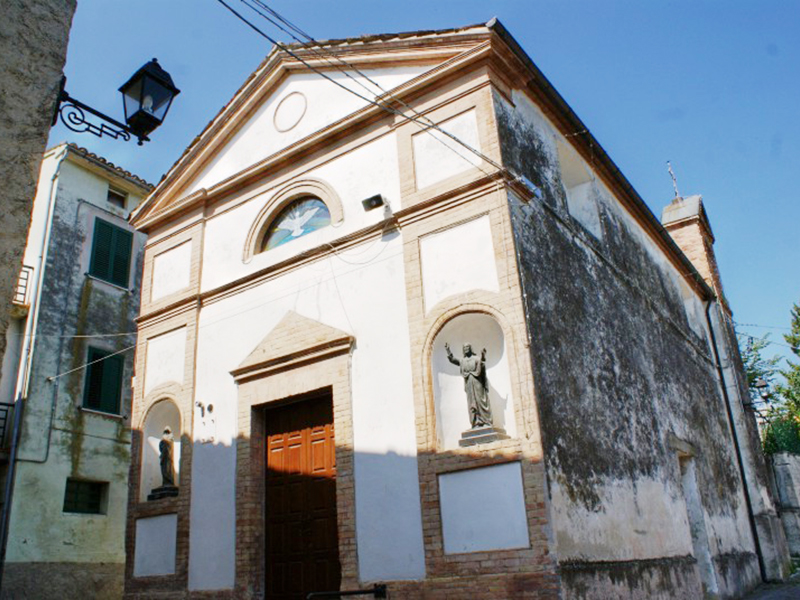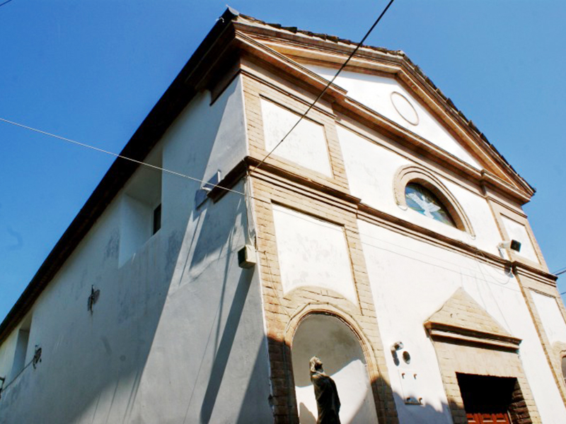 Realizzata in laterizio e con le pareti laterali a scarpa. Anch’essa ottocentesca, è con copertura a capanna e la sua facciata presenta un portale in laterizio ai lati del quale, in due edicole, prendono posto la statua di Gesù Cristo e quella della Madonna. In alto, sul vetro di una lunetta appena al di sotto del timpano è riprodotta l’immagine della colomba della pace. Dalla parete posteriore si eleva un campanile a vela che sorregge una campana.