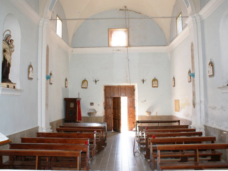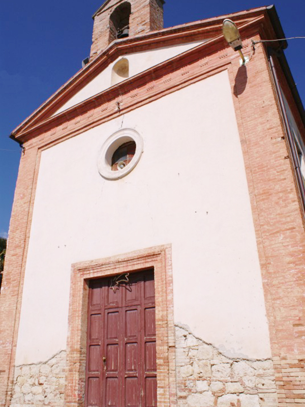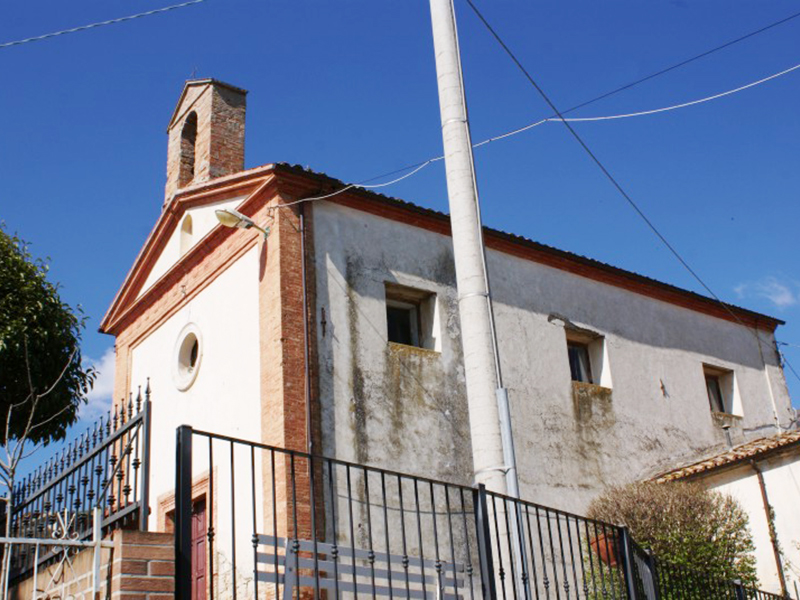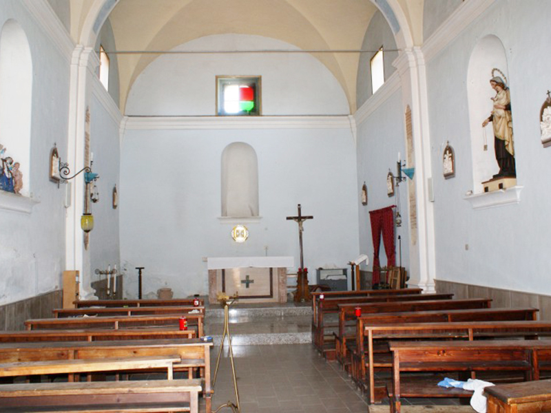 Risalente probabilmente alla fine dell’Ottocento. Avendo riportato lesioni a causa del sisma del 6 aprile 2009, è stata chiusa al pubblico con Ordinanza del Sindaco n.4282 del 24/4/2009, a seguito di sopralluogo dei Vigili del Fuoco, e, non essendo stata ancora riparata, non è stata riaperta. Le principali funzioni religiose vengono ora svolte nella vicina Roiano, mentre la messa domenicale viene celebrata in un locale di fortuna nel quale è stata temporaneamente collocata la statua di San Gennaro. La chiesa è con tetto a capanna sormontato da un campanile a vela in corrispondenza della facciata, che ospita una campana. La facciata presenta un semplice portale incorniciato in laterizio e, in alto un finestrone rotondo. Al centro del timpano si trova una piccola edicola un tempo destinata a contenere una statua della Madonna. L’interno è a navata unica priva di abside; la zona presbiteriale è sopraelevata di due gradini. In un’apposita edicola sulla parete sinistra trova tuttora posto una statuetta in terracotta della Madonna delle Grazie (Madonna in trono con Bambino), resto di un’antica chiesetta che sorgeva nei pressi; in un’analoga edicola sulla parete destra si trova invece una statua più recente della Madonna del Carmine. Incastonate nella parete opposta all’altare si trovano due acquasantiere, di cui una, più antica, potrebbe risalire alla fine del Cinquecento e provenire dalla stessa chiesetta di cui sopra.