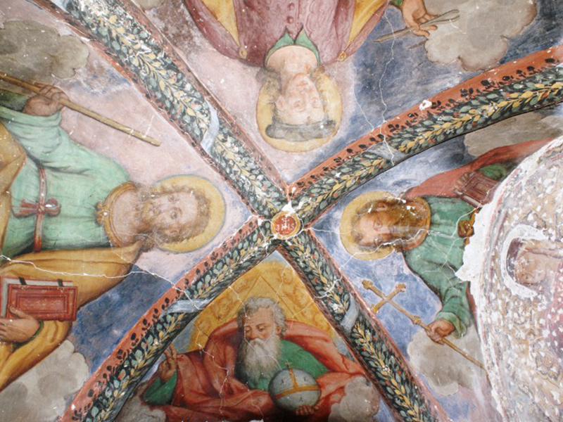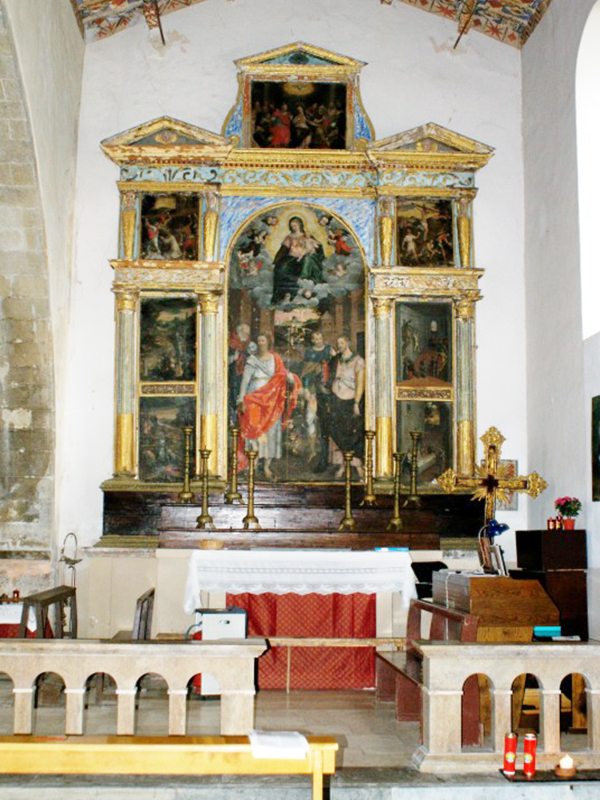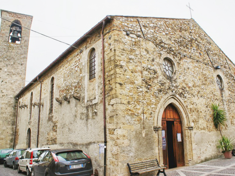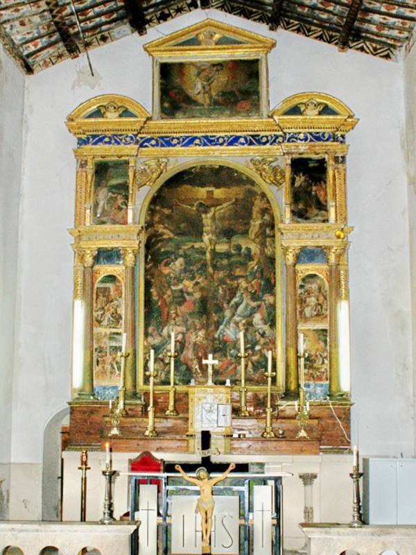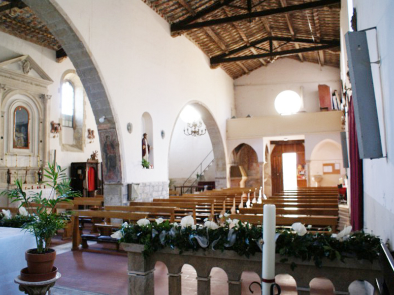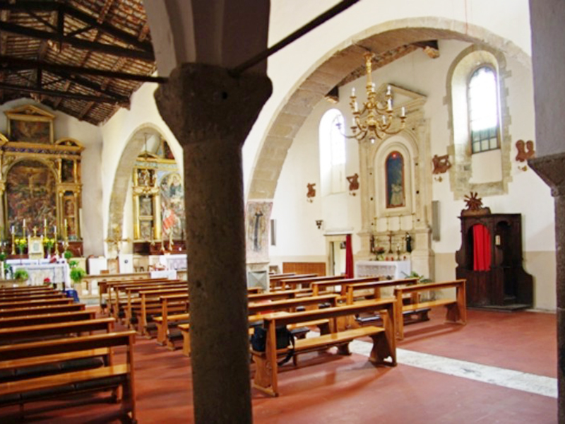 Ci appare con la sua copertura a capanna e facciata a coronamento orizzontale. Nella lunetta al di sopra del semplice portale con architrave piano trova posto un bel mosaico di 46 piastrelle in ceramica che raffigura il battesimo di Gesù da parte di San Giovanni, posizionato lì nel 1985. Nella parte alta della cornice del portale si notano dei decori in pietra lavorati. Appoggiato al muro della sacrestia è un campanile a vela che sorregge tre campane, di cui una più grande e due più piccole subito al di sotto. L’interno è a navata unica con tre altari barocchi in muratura restaurati da poco, di cui quello principale, nel presbiterio, contiene una tela raffigurante la Crocefissione, quello sulla parete destra una tela raffigurante Sant’Anna e S. Gioacchino e quello sulla parete di sinistra una tela raffigurante S.Giuseppe e l’Angelo, tutte risalenti probabilmente al Seicento. Ogni altare termina in alto con un timpano spezzato e vede in abbondanza la presenza di angeli e puttini. Appena dopo l’entrata è incastonata nel muro la placca con la Croce delle Indulgenze concessa da Papa Leone XIII nel 1901. Sulla parte centrale di questa si legge “Iesus Christus Deus Homo Vivit Regnat Imperat MCMI” e nel cerchio esterno "Osculantibus crucem hanc in ecclesia positam et recitantibus Pater indulgentia 200 dierum semel in diem".