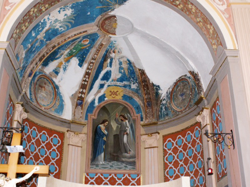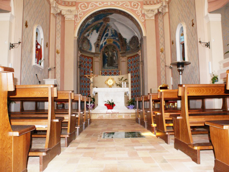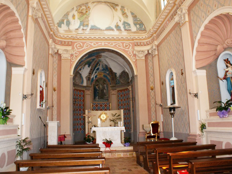 Realizzata in pietre legate con malta presenta sulla facciata un portale incorniciato in pietra e sormontato da un piccolo timpano sulla cui cuspide poggia una sfera. Appoggiata alla sua parete destra, a ridosso dell’abside, c’è la torre campanaria in cui alloggiano due campane. L’interno è a navata unica che termina con un’abside la cui volta presenta degli affreschi per larga parte deteriorati. In corrispondenza dell’abside c’è la zona presbiteriale, sopraelevata di un gradino rispetto al resto.