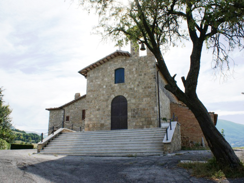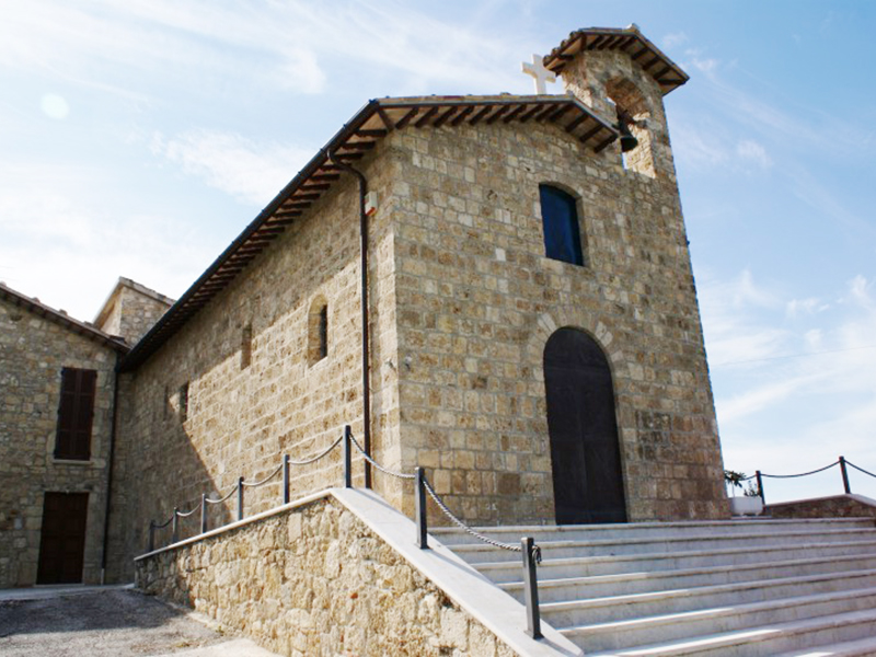 Nota fin dal 1324 e restaurata verso la fine degli anni Ottanta del secolo scorso, ha copertura a capanna con campanile a vela in facciata. Una larga scalinata di 10 gradini dà accesso al sagrato, su cui si affaccia un semplice portale con arco a tutto sesto incorniciato in pietra e chiuso da un moderno portone artisticamente decorato. Al di sopra di esso un finestrone rettangolare dà luce all’interno. Sul fianco sinistro due delle aperture sembrano appartenere alla struttura medievale, mentre le altre, compresa quella in facciata, apparterrebbero ad una ristrutturazione del Seicento. L’interno è a navata unica.
