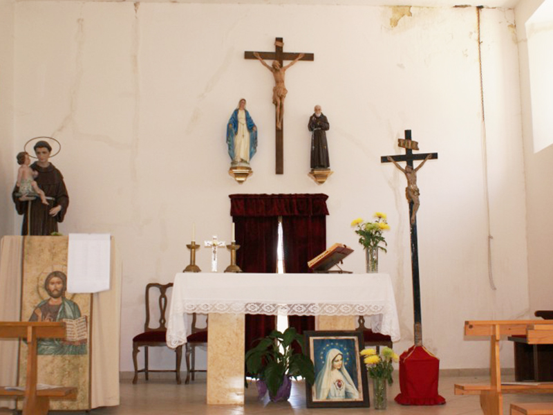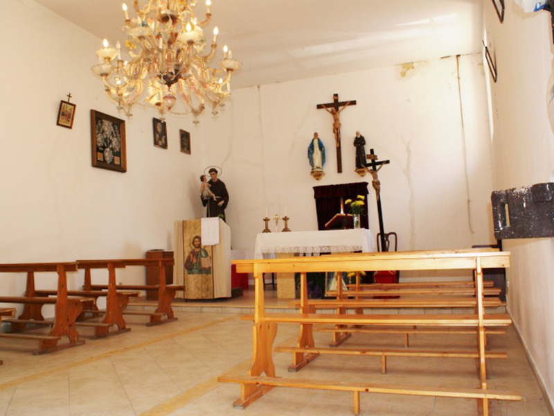 Nota in documenti fin dal XII secolo come Santa Croce ad Massam. L’edificio che ci si presenta oggi è il frutto di più rifacimenti e del restauro effettuato nel 1962 dal parroco di allora don Enzo Damiani. Ha copertura a capanna ed un campanile a vela posto su uno dei lati brevi sorregge una campana; l’unico residuo di antichità è il portale ad arco ogivale che si apre lateralmente alla chiesa. Ha una semplice cornice in pietra che poggia su capitelli modanati ed è databile, per affinità con altre opere architettoniche simili, tra la fine del XV e l’inizio del XVI secolo. L’interno è ad aula unica ed è dotato di un enorme moderno lampadario fuori proporzione rispetto al contesto, generoso dono di abitanti emigrati negli Stati Uniti. Incastonata al muro è un’acquasantiera in pietra a due lobi fogliati.
