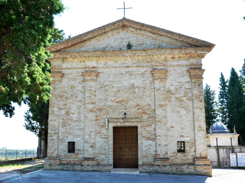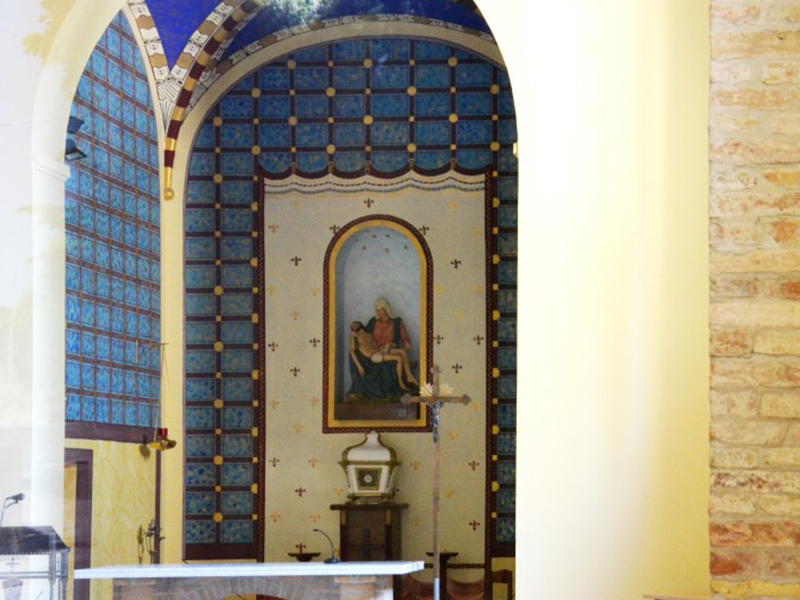 Le prime notizie che la riguardano risalgono al 1597; più volte rimaneggiata, è rimasta per lungo tempo in stato di abbandono. A metà degli anni Novanta del secolo scorso ha avuto degli importanti lavori di restauro, che hanno riguardato anche la ripulitura delle pareti esterne ed oggi si presenta completamente in laterizio con tetto a capanna e facciata culminante in un timpano. Il portale ad architrave piano incorniciato in laterizio ha ai suoi lati due caratteristiche finestrelle rettangolari e le pareti laterali sono rese più stabili da contrafforti. L’interno è a pianta rettangolare con la zona presbiteriale posta in una cappellina alla fine dell’unica navata. In una teca dietro l’altare fa bella mostra di se' una statuetta che raffigura Gesù morente tra le braccia della Madonna.