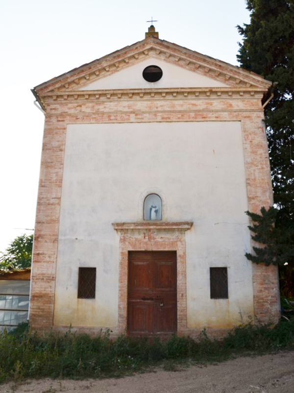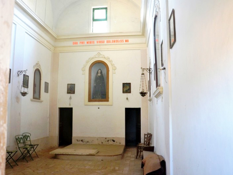 Si tratta di una vera e propria chiesetta rurale, un tempo cappella privata della famiglia Flaiani, vicino alla cui residenza è sorta, e poi divenuta di uso popolare, la cui costruzione risale ai primi dell’Ottocento. Ha copertura a capanna con la facciata che termina in un timpano. Il semplice portale ad architrave piano è incorniciato in laterizio ed ai suoi lati sono due piccole finestre. Alla parete posteriore è appoggiato un campanile a guglia. L’interno è disadorno, ma vi viene custodita la statua della Madonna dell’Addolorata utilizzata per le processioni dei devoti.
