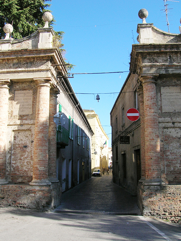 La Porta della Ringa (al termine di corso martiri Pennesi), che corrisponde all'antica Porta dell'Arengo, fu rifatta nel 1832 dal barone Diego Aliprandi in occasione della visita di Ferdinando II di Borbone. La porta è ornata da colonne binate addossate alla parete in laterizio. La parte terminale, con due sfere laterali, aperta la centro, è priva di un collegamento ad arco o architrave. Presenta sul alto sinistro una torre urbica del XVI secolo.
