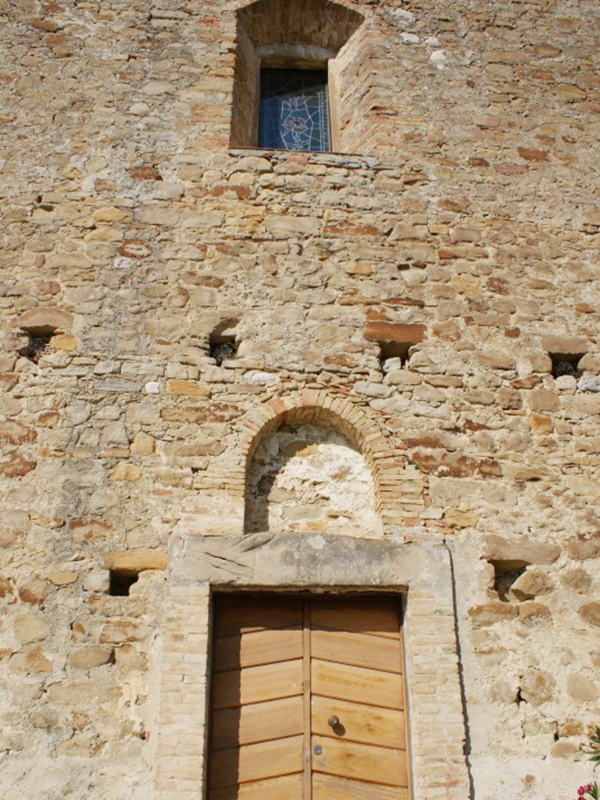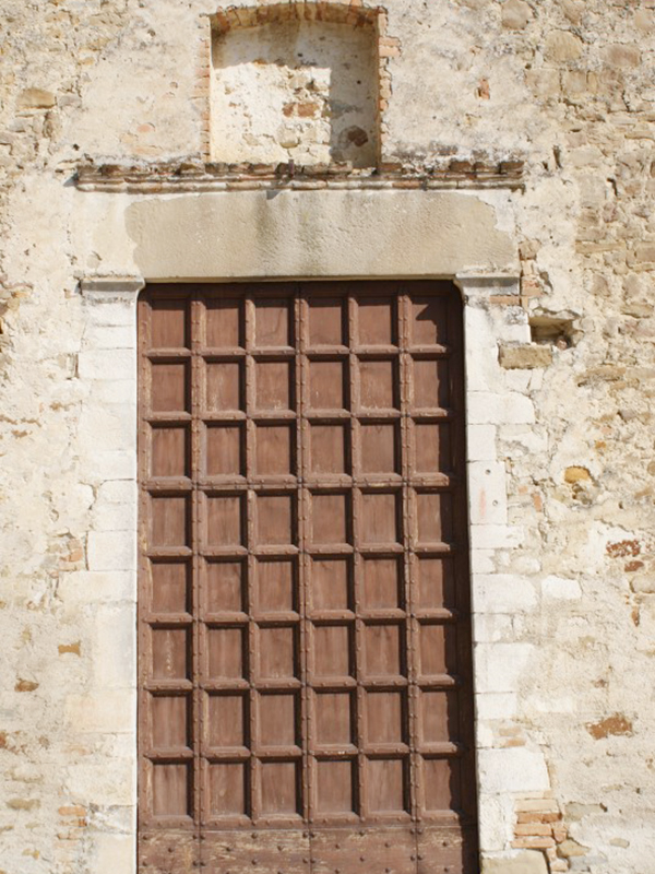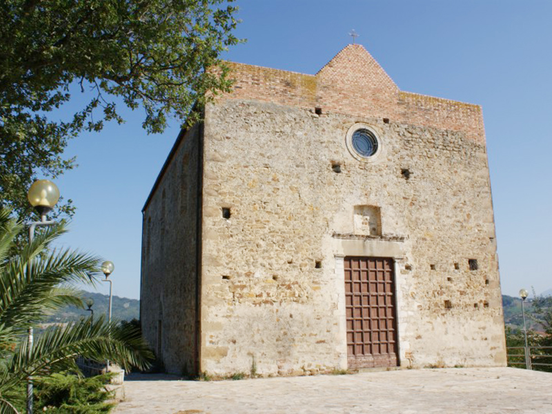 Detta anche “fuori le mura”. Di notevole interesse artistico, risale al XIV secolo e, edificata su un antico tempio pagano, è di stile romanico. La sua facciata è a coronamento orizzontale con al centro una struttura triangolare in mattoni a sostegno della croce. Il portale in legno, squadrato ed austero, è suddiviso in 48 riquadri ed è sormontato da una piccola edicola oggi vuota, che nel passato ha custodito una piccola statua della Madonna. In alto un "occhio" dà luce all’interno ed ingentilisce la facciata. Un campanile a vela, anch’esso in mattoni, si erge dalla parte posteriore della copertura ed ospita due campane. L’interno è a navata unica priva di abside con arco trionfale a tutto sesto ed offre ai fedeli un bellissimo altare ligneo seicentesco di stile barocco con fregi in oro. Il soffitto è completamente rivestito da magnifiche formelle di maiolica con disegni geometrici e raffigurazioni stilizzate di animali.