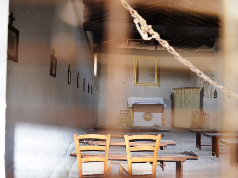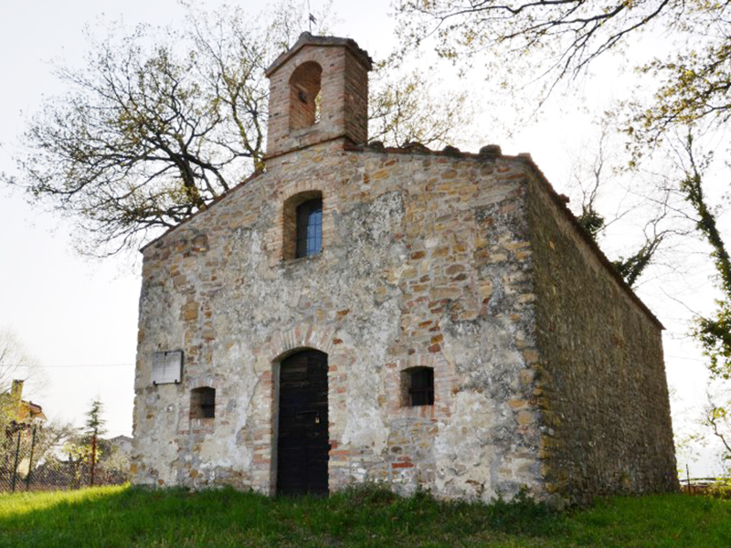 Si tratta di un’antica chiesetta campestre di proprietà della famiglia Spinozzi, che nel 1985 la fece restaurare nel ricordo di un congiunto. Posta in un boschetto di querce, ha copertura a capanna e dalla facciata anteriore si erge un campanile a vela attualmente privo di campana. La facciata è in laterizio e di fianco al portale incorniciato con mattoni ad arco ribassato sono due piccole finestre, anch’esse incorniciate in laterizio. Vicino alla sommità si apre un finestrone rettangolare. L’interno ha un’unica aula e vi si conservano povere suppellettili liturgiche.
