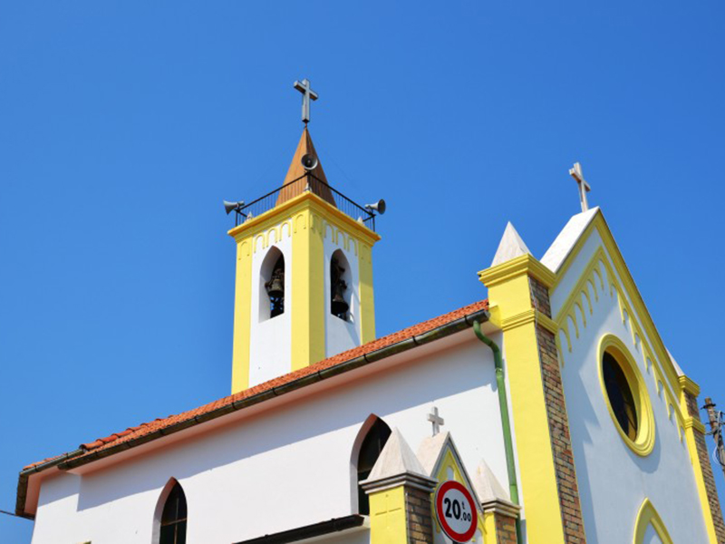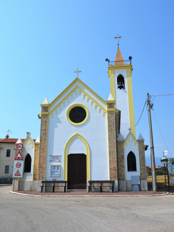 Eretta per volere del Padre francescano toranese frà Salvatore Pantoni (1921-1978), ha un corpo centrale con copertura a capanna a forte pendenza e due ali più piccole leggermente arretrate di architettura simile. Il portale d’ingresso è ad architrave piano ed è collocato in una cornice a forma di arco a sesto acuto. Al di sopra di esso è un rosone incorniciato. Appoggiata alla parte posteriore della parete sinistra della chiesa è la torre campanaria. E’ a base quadrata, presenta paraste angolari e, in alto, una finestra ad arco ogivale. Termina con una guglia piramidale a base quadrata, sulla sommità della quale è posta una grande croce. L’interno è a tre navate, di cui quelle laterali molto più basse e quella centrale termina nel presbiterio absidato.
