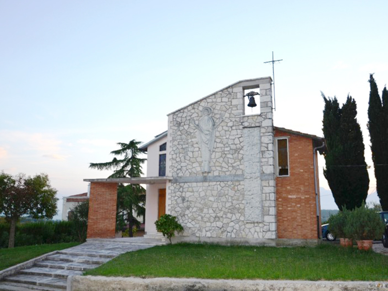 Costruita nel 1959, è di proprietà della famiglia Rasicci, che ne consente l'uso a tutti i devoti. E' un edifico moderno ed accogliente realizzato prevalentemente in laterizio, la cui parete a vista della strada presenta abbellimenti in pietra con una raffigurazione del Cristo, anch'essa in pietra.