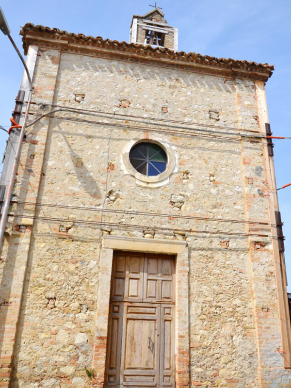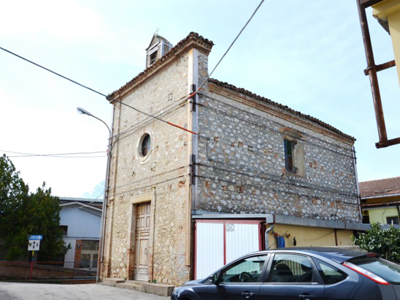 Si tratta di un massiccio edificio in pietre gravemente danneggiato dal sisma aquilano del 6 aprile 2009 e per questo dichiarato inagibile con Ordinanza Sindacale n.30 del 9/4/2009. Tuttora parzialmente imbragato per la sua messa in sicurezza, ha copertura a capanna e facciata con coronamento piano. Sulla facciata lineare si aprono un portale ad architrave piano e, sopra di esso, un finestrone rotondo. Un piccolo campanile a vela sorregge una campana. L’interno è ad aula unica.