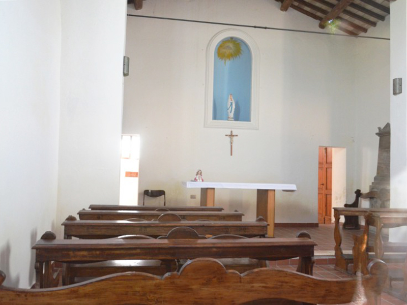 La sua costruzione si fa risalire ai primi decenni del Cinquecento. In quel periodo furono molte le chiese erette in onore di S.Rocco per manifestare la devozione a questo santo, protettore dalle epidemie e dalle malattie gravissime, in particolare dal terribile flagello della peste. E' una costruzione in laterizio con copertura a capanna il cui portale d'ingresso è preceduto da un piccolo portico sostenuto da due colonne in mattoni. Dalla parte centrale del tetto si innalza un campanile a vela che ospita una campana. L'interno è costituito da un'unica piccola aula. Inizialmente, la chiesa veniva utilizzata come luogo per il seppellimento degli appestati, in casi eccezionali anche per coloro che perivano di morte violenta, come risulta dai registri parrocchiali. Sono ancora esistenti due fosse, una più ampia dove venivano sepolti uomini e donne, l’altra adoperata per i cadaveri infetti nel periodo di epidemie, ma anche per riporvi le ossa quando era necessario ripulire e disinfettare la tomba più grande, furono usate fino al 21 novembre del 1838 quando, il delegato apostolico ordinò la realizzazione di un cimitero. Nel 1852, con disposizioni del Regno di Napoli, la chiesa di San Rocco divenne il luogo ufficiale di tumulazione nonostante le reiterate ingiunzioni dei Prefetti a realizzare un luogo idoneo al di fuori del centro abitato, almeno fino all’ottobre del 1880, quando entrò in funzione l’attuale cimitero.