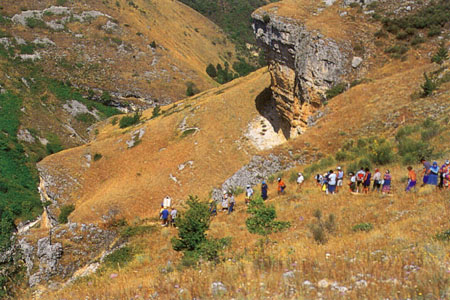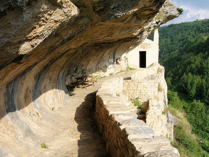 L'eremo di San Bartolomeo è uno dei tanti luoghi di raccoglimento e preghiera. Una piccola statua lignea del Santo, di dimensioni ridotte e di evidente fattura popolare è conservata in una nicchia dell'eremo. Essa è oggetto di profonda venerazione da parte degli abitanti della Valle dell'Orfento che ogni anno, il 25 agosto, organizzano un pellegrinaggio fino al luogo rupestre. Prima che spunti il sole centinaia di devoti incominciano a salire verso l'eremo che è situato sotto un tetto di roccia, seguendo un percorso difficile e malagevole. Nella chiesetta vi è una piccola sorgente che i pellegrini ritengono miracolosa e alla quale si fermano a bere e a bagnarsi le mani in segno di devozione. È consuetudine anche scendere attraverso la Scala santa, un passaggio scavato nella roccia, fino al torrente Capo la Vena che scorre in fondo al vallone. Dopo le abluzioni e vari atti penitenziali è tradizione fare colazione lungo il greto del fiume, prima di risalire all'eremo, da dove verso le sette parte una singolare processione: i devoti a turno reggono sulle braccia la piccola statua di San Bartolomeo e, cantando inni e preghiere, scendono verso Roccamorice che raggiungono dopo alcune ore di cammino. Tra marce trionfali e spari di mortaretti, la statua è posta solennemente sull'altare maggiore della chiesa parrocchiale, dove rimarrà per quindici giorni, fino al 9 settembre, quando un analogo pellegrinaggio la riporterà nel suo eremo montano.