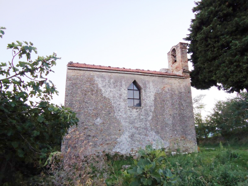 E’ un classico esempio di chiesetta rurale che presenta copertura a capanna e semplice portale ad architrave piano incorniciato in pietra. Ai lati di questo si aprono due insolite finestre rotonde ed una terza, in prossimità del timpano, dà luce all’interno. In alto, in asse con le due finestre rotonde sono due nicchie, oggi vuote, che evidentemente ospitavano altrettante piccole statue. Dalla facciata si alza un piccolo campanile a vela che sorregge una campana. L’interno, formato da un’unica auletta, è disadorno ed arredato con elementi essenziali.