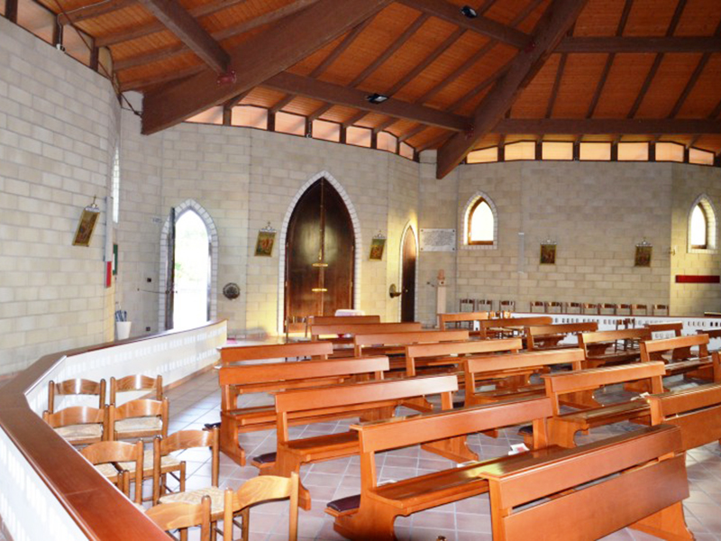 Inaugurato il 10 marzo 1996, appartiene alla parrocchia di S.Pietro ad Spoltinum. Ha pianta esagonale con una bella copertura a pagoda e l’interno ampio e luminoso con copertura del tetto a vista. Dietro l’altare campeggia una moderna Pala d’altare raffigurante la Resurrezione di Gesù progettata, realizzata e donata dal Liceo Scientifico Statale “Marie Curie” di Giulianova (Te) nel 1999. E’ in tessuto di cotone dipinto a mano fissato su una struttura in legno montata a vela.
