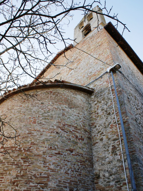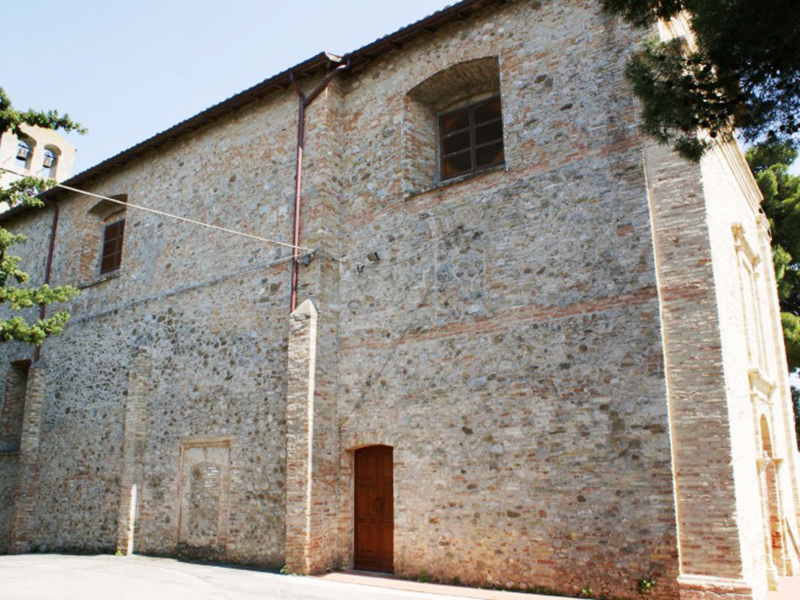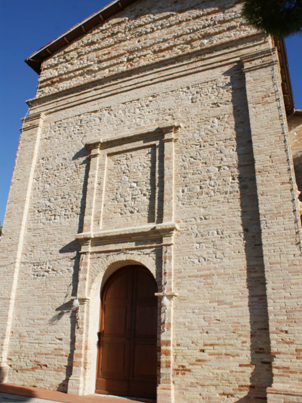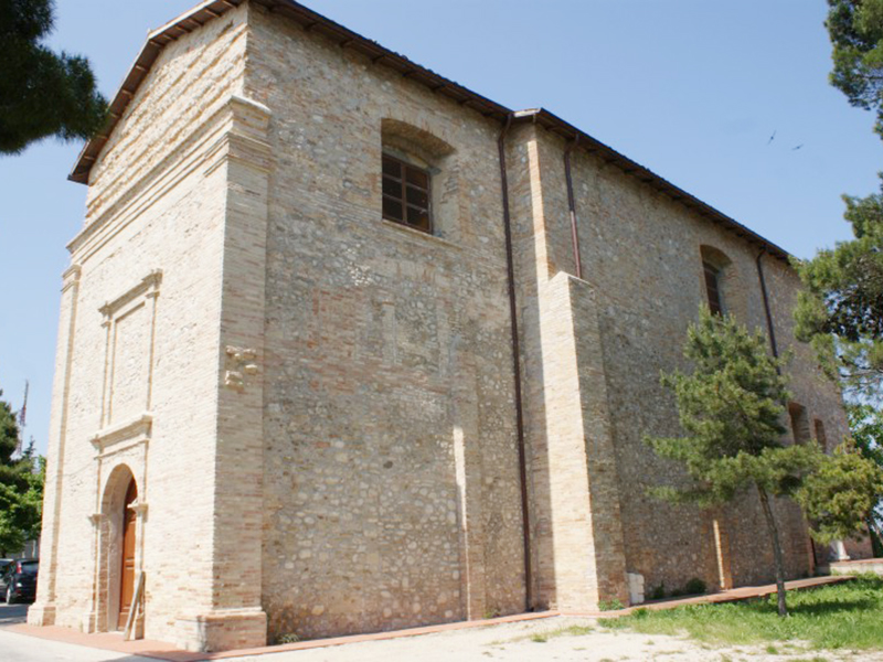 Venne eretta nel 1580 e successivamente modificata e più volte restaurata. Si presenta con copertura a capanna, dalla cui parte posteriore si erge un campanile a vela che ospita tre campane, di cui una, quella inferiore, più grande della altre due. Sui lati ci sono dei contrafforti a rinforzare l’alta struttura in ciottoli di fiume e laterizio e, in alto, dei finestroni strombati. Sulla facciata si apre un semplice portale, anch’esso in laterizio, sormontato da un finestrone cieco. L’interno è a navata unica che termina con un’abside.