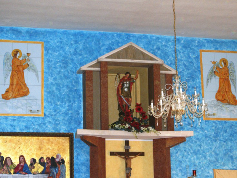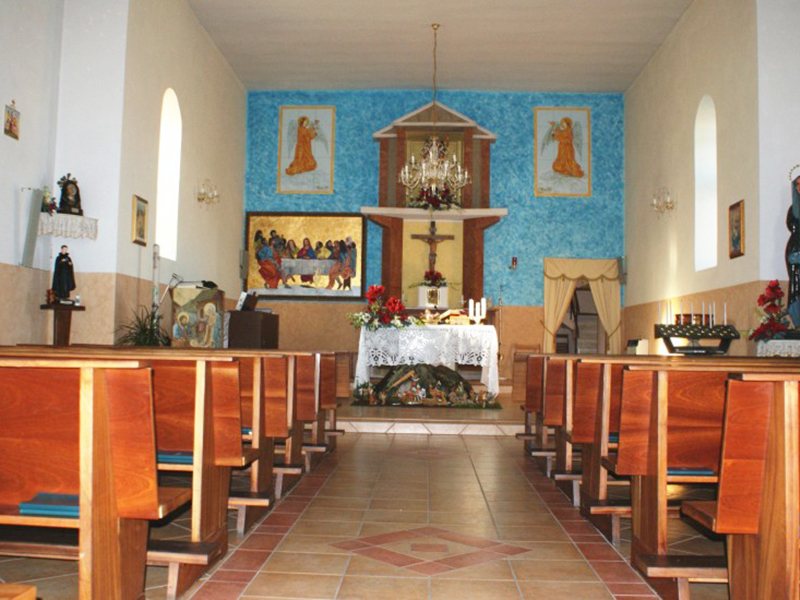 E’ una moderna costruzione realizzata in sostituzione della vecchia chiesa parrocchiale. Di essa peraltro conserva un fregio floreale in pietra di origine sconosciuta, forse risalente al V secolo, che era stato lì rimesso in opera e che ora si trova incastonato nella facciata della nuova chiesa. Questa, realizzata interamente in laterizio, presenta copertura a capanna; sulla facciata, oltre al semplice portale ad architrave piano cui si accede salendo alcuni gradini, si aprono due strette finestre rettangolari con arco a tutto sesto ai lati del portale stesso e, in alto, un grande finestrone rotondo. Dalla parete posteriore si erge un campanile a vela che ospita una campana. L’interno è ad aula unica che termina con la zona presbiteriale rialzata di un gradino dal resto, dove trova posto, in un elaborato altare addossato al muro appena dietro la mensa d'altare, una statua di S.Michele Arcangelo.