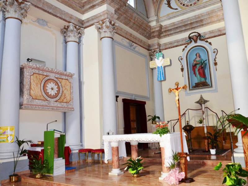 Domina tutto il centro storico del paese. Secondo la tradizione, Vittoria, nobile fanciulla romana vissuta nel III secolo d.c., rifiutò di sposare un ricco patrizio per donarsi a Dio e venne per questo esiliata e martirizzata. La chiesa era di sicuro esistente già nel 1300 e nel tempo ha subito molti restauri ed anche dei rifacimenti quasi totali, come nel 1796, quando praticamente venne rifatta dalle fondamenta; il più recente è stato effettuato nel 2006. La chiesa ha copertura a capanna e sulla sua facciata si apre un portale ad arco ribassato incorniciato in laterizio. Nella parte alta un finestrone rettangolare dà luce all'interno e ancora più su, in prossimità della sommità, è un orologio con quadrante rotondo. Dal colmo del tetto si alza un piccolo campanile a vela in metallo con due campane. L'interno, completamente in stile barocco, è a navata unica absidata. Lungo le pareti significativa è la presenza di cappelle. Al di sopra della porta d'ingresso è la cantoria, nella quale trova posto un organo a canne. In un muro prossimità dell'ingresso è incastonata la Croce delle Indulgenze che Papa Leone XIII concesse nel 1901.