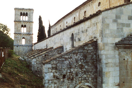 Immersa in uno scenario naturale ricco di boschi, di acque e di anfratti, utilizzati come romitori dai monaci, San Liberatore a Maiella, con a fianco il campanile quadrato, sviluppato in tre piani traforati progressivamente da monofore, bifore e trifore, si staglia nel verde, come un'equilibrata e bianca massa di volumi, percorsi dall'elegante disegno dei rilievi verticali. La facciata ha uno schema a salienti di gusto lombardo che rispecchia la tripartizione interna. Divisa in due ordini da una linea appena accennata, presenta in quella superiore tre monofore semplici e in quella inferiore tre portali che rappresentano il modello più antico del tipo romanico abruzzese. L'interno è a pianta basilicale a tre navate, scandite da sette arcate a tutto tondo poggianti su pilastri rettangolari. Tre archi di trionfo, di cui si è perduto quello centrale, poggianti su piloni cruciformi, privi di base e terminanti in cimase decorate ad ovuli e dentelli, immettono nella zona presbiteriale. La stessa decorazione divide, orizzontalmente in due, le muraglie della navata centrale e corre sul semicatino absidale che, donando all'insieme uno stile sobrio e solenne, conclude, in tre ordini circolari, la costruzione. La soffittatura è stata ricostruita con capriate lignee a vista. Nella navata di sinistra si aprono due porte decorate che immettevano nel chiostro e nella residenza monastica. Da notare sull'architrave della seconda i fiori in altorilievo che costituiscono il motivo tipico del romanico abruzzese. Sul pavimento della navata centrale è stato rimontato quel che resta di una composizione geometrica policroma eseguita dalle maestranze cosmatesche nel 1200.