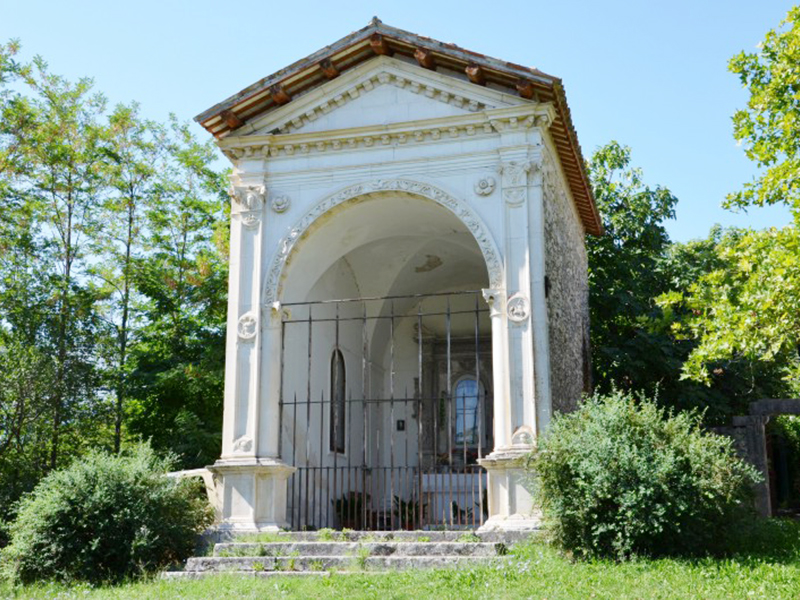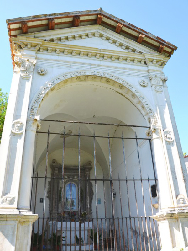 La costruzione risale agli inizi del Cinquecento ed è attribuita a Girolamo da Vicenza; si pensa che le stesse maestranze che lavorarono alla sua costruzione furono impiegate anche per la decorazione architettonica della Chiesa della Madonna degli Angeli presso il cimitero cittadino. La parte anteriore della chiesetta presenta un grande arco a tutto sesto di stile rinascimentale sostenuto da colonne e sormontato da un timpano che segue le linee della copertura a capanna. Particolarmente belli risultano essere i capitelli perché molto ben curati nella realizzazione.