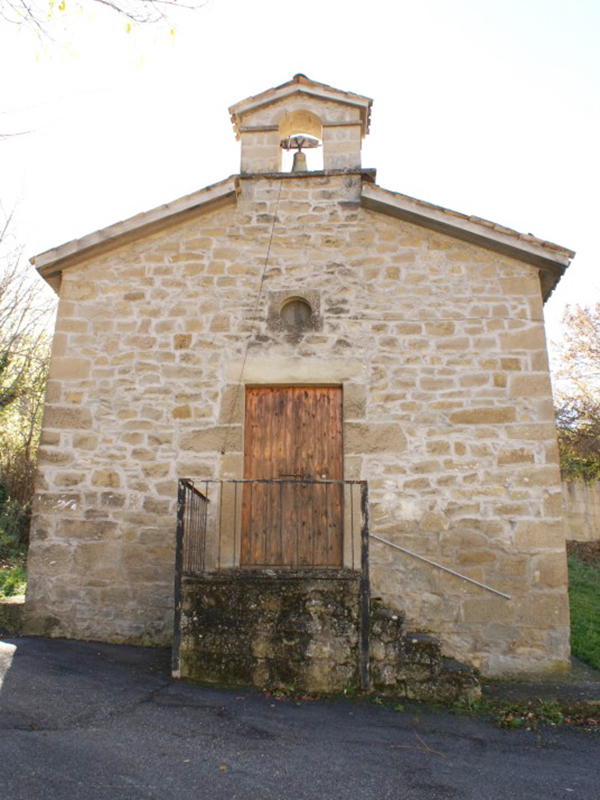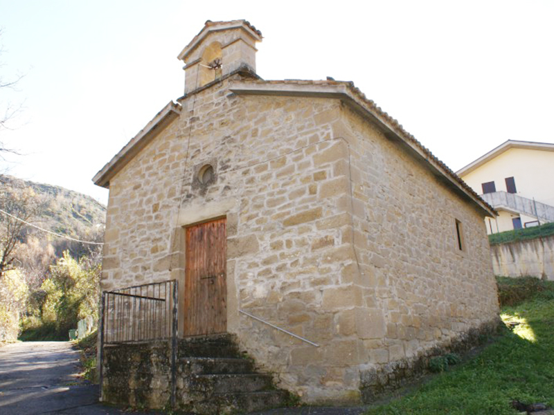 Semplice edificio con tetto a capanna in corrispondenza della cui facciata si erge un campaniletto a vela per una campana. L’interno ad aula unica non nasconde certo tesori, ma rende solo tangibile il segno della devozione degli abitanti di questo borgo, un tempo denominato Villa Fluminis, che verso la fine del quattrocento contribuirono alla costruzione ed all’arredo della Chiesa di S.Paolo di Pezzelle, e che successivamente sentirono il bisogno di disporre di un proprio edificio dedicato al culto.