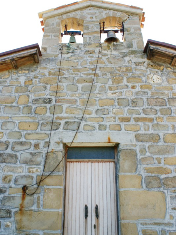 Si presenta di semplice fattura, con tetto a capanna e piccolo campanile a vela per due campane. L’interno è ad aula unica priva di abside, ed in fondo si trova un altare ligneo di piccole dimensioni con colonne tortili di stile barocco. Un bel dipinto raffigurante Santa Giusta, S. Pietro e S. Paolo viene fatto risalire al settecento. Della chiesa si fa menzione già in un documento del 1300, ma la struttura che è giunta fino a noi è frutto di un massiccio restauro intorno al Settecento. Su una delle campane si legge "Ave Maria Gratia Plena - A.D. 1655".