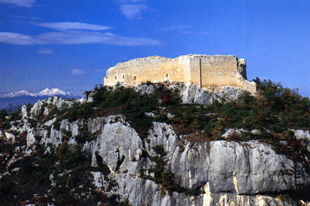 Castel Menardo è posto sul colle Ciumina nei pressi di Serramonacesca, un'altura dove domina imponente i passaggi della Val Pescara e i valichi della Maiella ed è probabilmente il più antico fortilizio della regione. La tradizione vuole che sia stato costruito in una notte dai Paladini di Carlo Magno ma le sue origini sono incerte e potrebbero essere datate intorno alla metà del XII secolo. La sua principale funzione era di controllare i tracciati storici della viabilità ed in particolare il "tratturo magno" percorso che condizionò, in quei tempi, la geografia economica e sociale dell'Abruzzo e della Maiella.