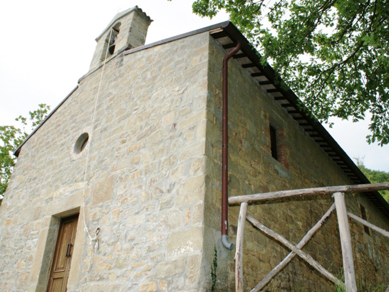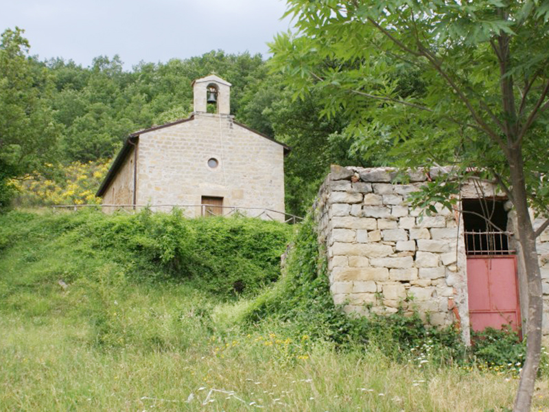 Si tratta di un edificio massiccio e semplice, in gran parte ristrutturato da qualche decennio, discosto rispetto al borgo e posizionato su una piccola altura che lo sovrasta. Si presenta con un tetto a capanna ed un campanile a vela che ospita una campana. Sui lati lunghi si aprono due alti finestroni, mentre sulla facciata principale un "occhio" dà luce all'interno.