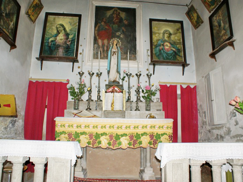 Restaurata verso la fine degli anni Settanta del secolo scorso, si presenta con copertura a capanna e campanile a vela in laterizio che sorregge due campane. Una mattonella al di sopra del semplice portale ad architrave piano reca la data del 1651, data a cui è probabile che risalga la costruzione originaria. L’interno è ad ambiente unico in cui la zona presbiteriale è separata dal resto, oltre che da un gradino, anche da una balaustra che consente un passaggio centrale. L’altare, rivolto verso il muro, per cui il sacerdote vi celebra la S. Messa rivolgendo le spalle ai fedeli, è sormontato da tre tele risalenti probabilmente a fine Ottocento. Sopra al portale trova posto in un sopralzo un piccolo spazio per i cantori, l’accesso al quale è garantito da una porticina esterna in un curioso angusto passaggio di fianco alla facciata.
