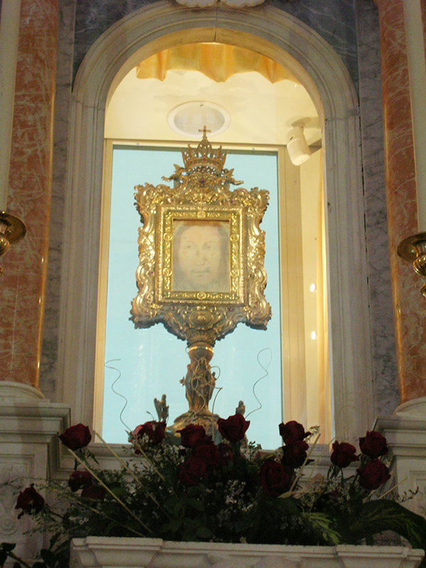Si narra che un misterioso pellegrino giunto in paese in un giorno imprecisato del 1506, recatosi nella chiesa di San Nicola di Bari con il dottor fisico Giacomo Antonio Leonelli, gli consegnò un velo riproducente le sembianze del Volto di Cristo. La reliquia restò di proprietà della famiglia Leonelli e dei suoi eredi fino al 1618, quando fu acquistata da Donatantonio de Fabritiis che, vent'anni dopo, la donò al convento dei Frati Minori Cappuccini. Dopo un attento restauro eseguito da frate Remigio da Rapino, di cui le cronache lodano l'amorevole pazienza, il Sacro Velo fu posto in una preziosa teca esposta sopra l'altar maggiore. Da quel momento la Reliquia attirò l'interesse e la devozione delle popolazioni circostanti, tanto che l'afflusso dei pellegrini assunse notevoli dimensioni. I Padri cappuccini credettero opportuno, pertanto affidare al teologo padre Donato da Bomba il compito di iniziare una accurata ricerca sulla Sacra Immagine, al fine di diradare il fitto mistero che ne avvolgeva la provenienza. Le indagini furono esposte in una Relazione Istorica che evidenziava i caratteri miracolosi della Reliquia.