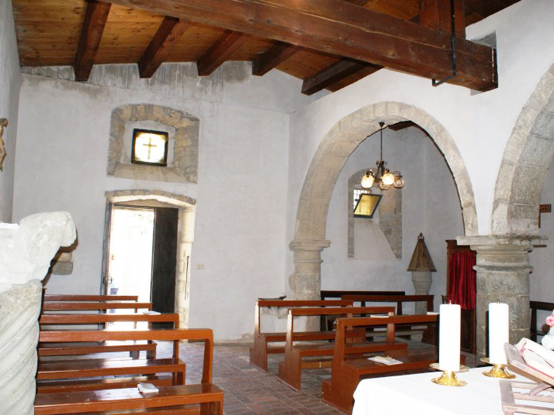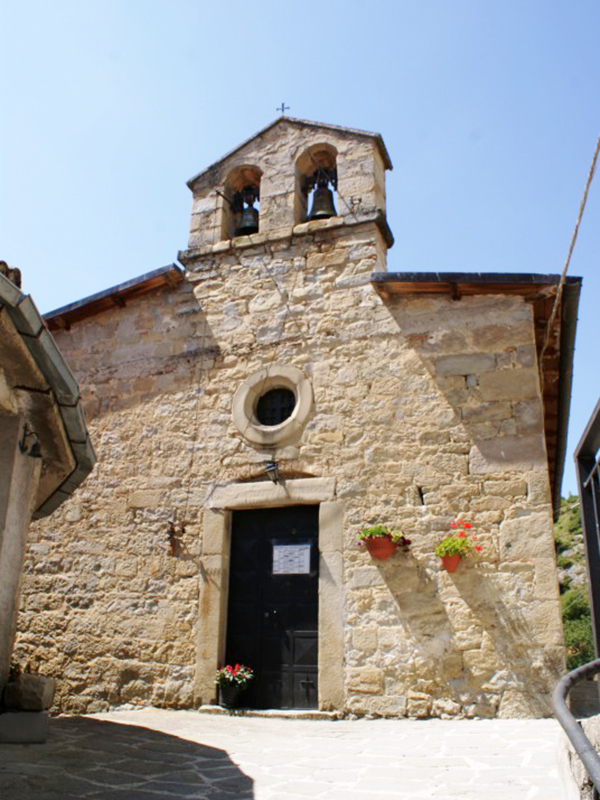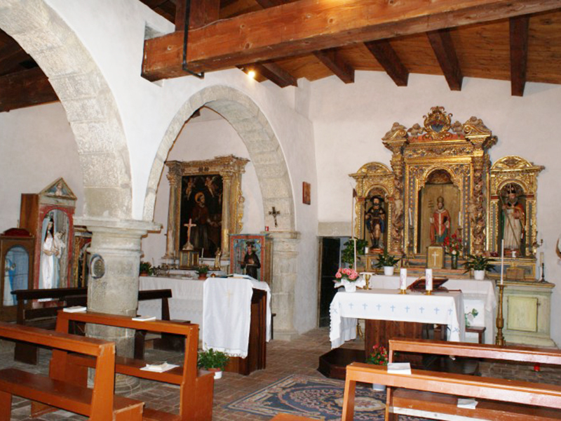 Costruzione in pietra eretta nel 1529, debellata la peste, e consacrata nel 1581. Restaurata negli anni Ottanta del secolo scorso, ha copertura a capanna. Sulla facciata, sormontata da un campanile a vela che ospita due campane, si apre il semplice portale al di sopra del quale c’è un finestrone rotondo, anch’esso incorniciato in pietra. L’interno è a due navate, divise da due grandi archi a tutto sesto, di cui quella sinistra venne aggiunta probabilmente nel 1631, data che si legge sull’architrave del portale (Ave Templum Domini 1631). La navata principale termina con un bell’altare barocco con le classiche colonnine tortili in legno dipinto d’oro nelle cui edicole laterali sono le statue lignee di S.Silvestro e S.Rocco. L’altare della navata minore ha come pala un dipinto probabilmente seicentesco raffigurante S.Carlo Borromeo. Su una della colonne rotonde che sorreggono gli archi è incastonata la placca con la Croce delle Indulgenze che Papa Leone XIII concesse nel 1901. Nella chiesa si conservano, seppure fuori contesto, un elemento di colonna tortile ed un leoncino in pietra, probabilmente risalenti al Trecento e provenienti dal monastero di S.Silvestro ormai diruto che intorno all’anno mille venne eretto in località Vicenne, sulla strada che porta a Macchia Vomano, dipendente da quello di S.Benedetto a Paterno che un tempo sorgeva a San Lorenzo di Montorio al Vomano.