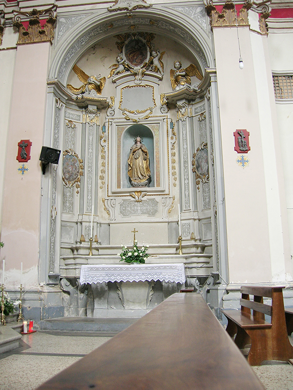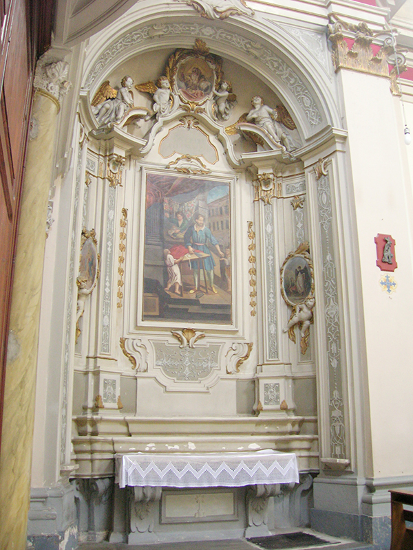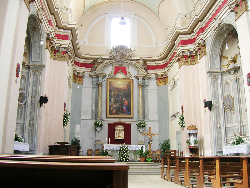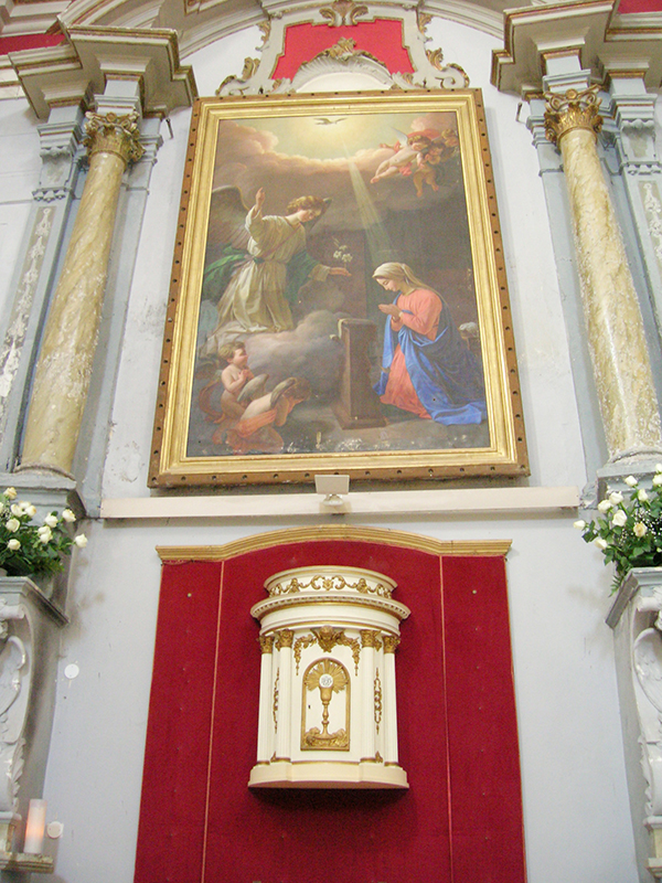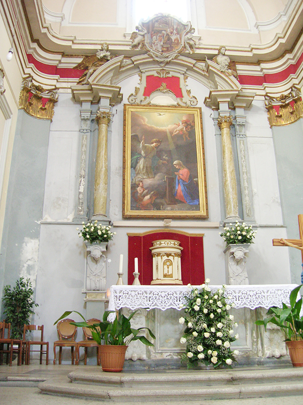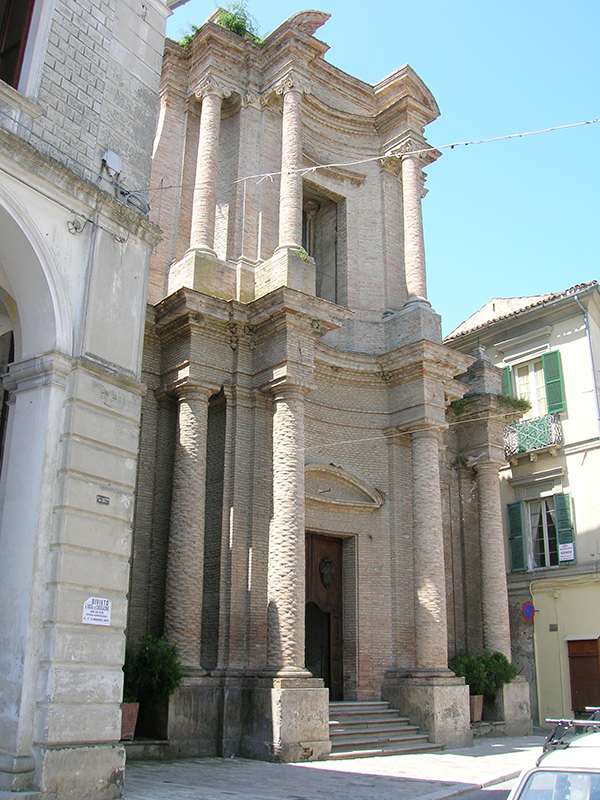 In corso Alessandrini, è fra i più importanti edifici del Barocco pennese, frutto dei rifacimenti effettuati nel 1733 su una preesistente chiesa bizantina del XIII secolo. La facciata, tutta in mattoni a vista, con due ordini di colonne in laterizio sovrapposte, svetta verso l'alto in modo elegante e sinuoso, caratteristica sottolineata dalla sezione centrale lievemente concava. A navata unica, possiede decorazioni di stampo neoclassico, una tela anonima raffigurante Sant'Omobono (XVIII secolo) ed un grande dipinto con l'Annunciazione. Da questa chiesa, dove si conserva anche una pregevole scultura lignea raffigurante il Cristo deposto (XVII secolo) ed un artistico Covertone del Cristo morto in velluto nero ricamato in oro e argento, su disegno di Salvatore Colapietro, dal 1570 prende il via la Processione del Cristo morto che si tiene il Venerdì Santo.