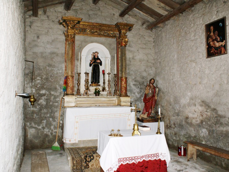 Venne eretta nel 1869 e questa data è incisa significativamente sull’architrave del semplice portale, ai cui lati si aprono due piccole finestre quadrate anch’esse incorniciate in pietra. In alto, quasi al colmo della copertura a capanna, si apre una finestra rettangolare e sulla sommità del tetto un piccolo campanile a vela sorregge una campana. L’edificio è stato restaurato verso la fine del secolo scorso ed all’interno vi si conserva un altare in legno dipinto dorato del tutto fatiscente, nella nicchia centrale del quale trova posto una statua di S.Antonio da Padova.