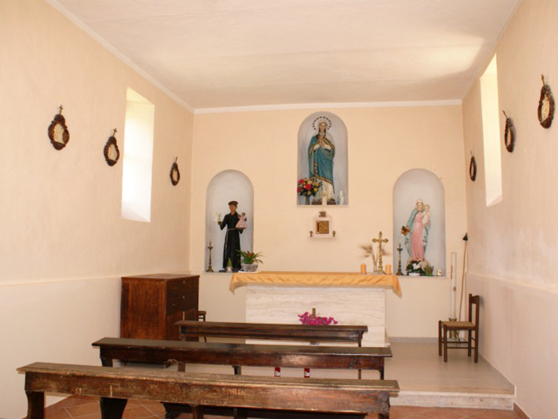 Sorta un pò più a valle, al di sotto della strada provinciale, e divenuta vecchia e diruta, venne ricostruita nel 1958 nell’attuale ubicazione, riutilizzando parzialmente materiali dell’antica chiesetta. Venne acquistata una nuova campana, sulla quale si legge “1958 - Realizzata nel centenario dell’apparizione di Lourdes. Maria concepita senza peccato pregate per noi”. Restaurata nel 1977, è con copertura a capanna ed in facciata un piccolo campanile a vela sorregge una campana. Il portale è ad architrave piano ed al di sopra di esso trova posto una piccola finestra rotonda incorniciata in pietra. L’interno è ad aula unica, in fondo alla quale si trova l’umile altare sopraelevato di un gradino. In tre nicchie sulla parete alle spalle di questo trovano posto altrettante statue.