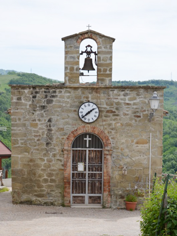 L'impianto originario risale al secolo XVI ma i recenti terremoti l’hanno gravemente danneggiata. La sua copertura è a capanna e la facciata è a coronamento orizzontale. Il portale con arco a tutto sesto è incorniciato in laterizio e poco al di sopra dell’arco è un grande orologio circolare con numeri romani; al di sopra di questo, sul coronamento, si alza un campanile a vela che sorregge una sola campana. Su di essa è la scritta “Paraesi (sic) dedica a S.Leonardo – A.D. 1953 – Fonderia Pasqualini – Fermo”.