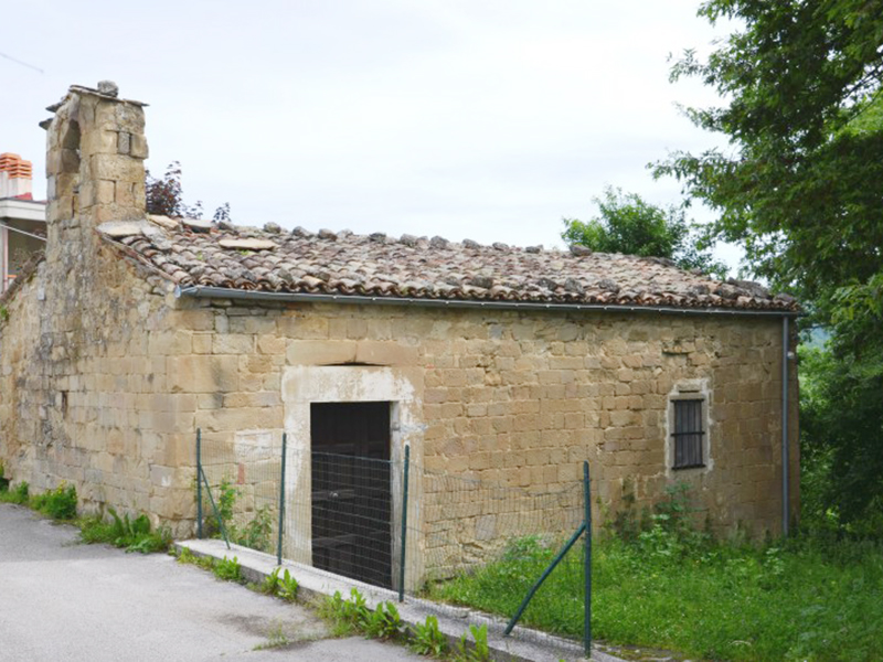 Il piccolo edificio, la cui struttura originaria risale probabilmente al XV secolo, si trova su un leggero pendio appena più in basso della strada. Sulla sua facciata principale, costituita dal prospetto laterale dell’edificio, si aprono un semplice portale riquadrato da una cornice liscia intonacata ed una finestra rettangolare protetta da inferriate. Uno dei lati minori è coronato da una piccola cella campanaria per una sola campana. L’accesso ha architrave piano sormontato da due conci lievemente arcati che costituiscono un arco di scarico al fine da alleggerire lo sforzo dell’architrave. Su questo è scolpita una croce latina e di fianco al portale è un concio rimesso in opera su cui sono scavati una croce greca insieme ad altro simbolo. La copertura è a capanna e l’interno ad aula unica è coperto da controsoffittatura a doghe lignee. Sul finire del secolo scorso l’edificio è stato restaurato, con riposizionamento dell’altare e aggiunta di arredi interni.