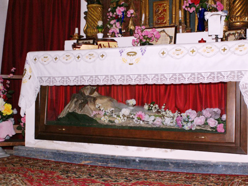Si presenta con copertura a capanna e con un campaniletto a vela in facciata in cui alloggia una campana. All’interno, all’estremità dell’unica piccola aula, si trova un piccolo altare barocco con colonne tortili in legno dipinto che reca la data 1735. Sotto la mensa dell’altare è collocata la statua del Cristo Morto. Su una delle pareti è incastonata una mattonella a cura della Diocesi Teramo-Atri su cui è rappresentato il simbolo del Giubileo 2000 ed è scritta la frase “Et verbum caro factum est. Iubilaeum AD MM”.