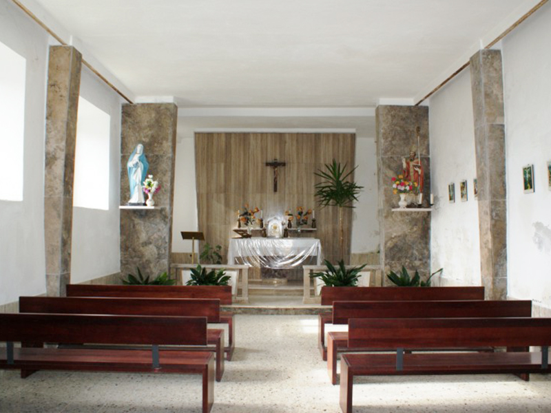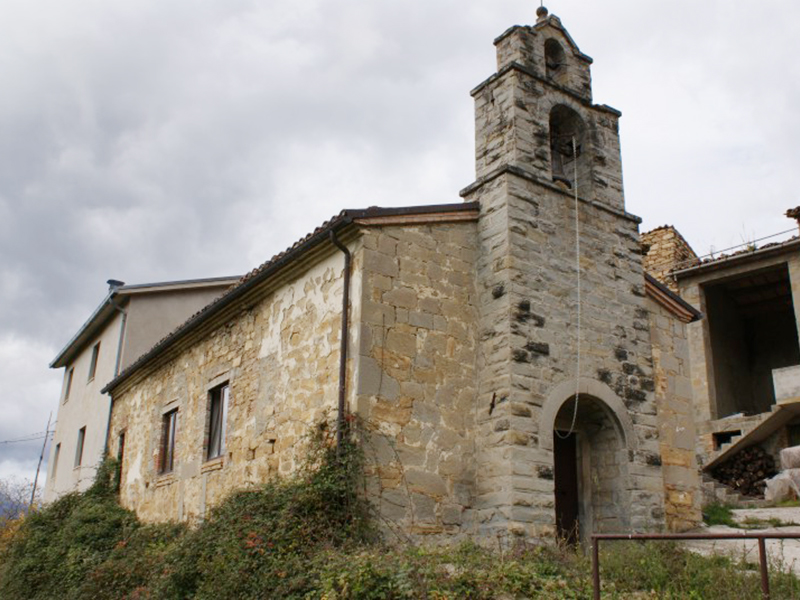 Si trova in mezzo al borgo ed è databile intorno all’inizio del 1800, costruita in sostituzione dell’antica chiesetta medievale crollata, i cui ruderi sono ancora visibili in un boschetto nei pressi dell’ingresso del borgo. Dal 1611 al 1614 fu pertinenza del Monastero benedettino femminile di San Giovanni di Teramo, che operò in sostituzione del più antico Monastero benedettino femminile di San Giovanni a Scorzone dopo lo smantellamento di questo avvenuto intorno al 1530. La campana, presumibilmente appartenuta all’antica chiesetta, trova posto in un massiccio campanile eretto negli anni trenta del novecento. L’attuale chiesa, restaurata sul finire degli anni duemila, è completamente ammodernata e presenta un’aula unica priva di abside. Lucenti travertini e moderni finestroni che si affacciano sulla valle danno luce all’interno, ma risulta così perduto ogni fascino dell’antico luogo di culto.