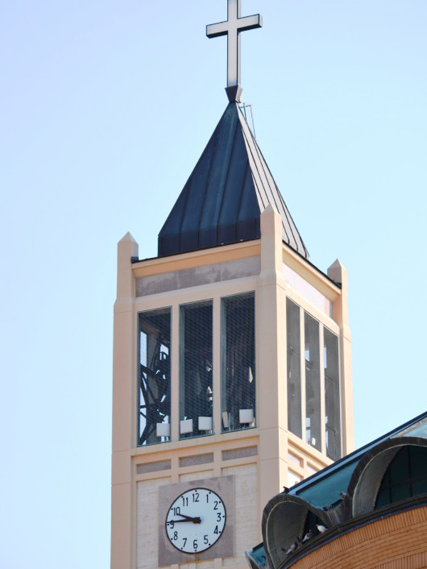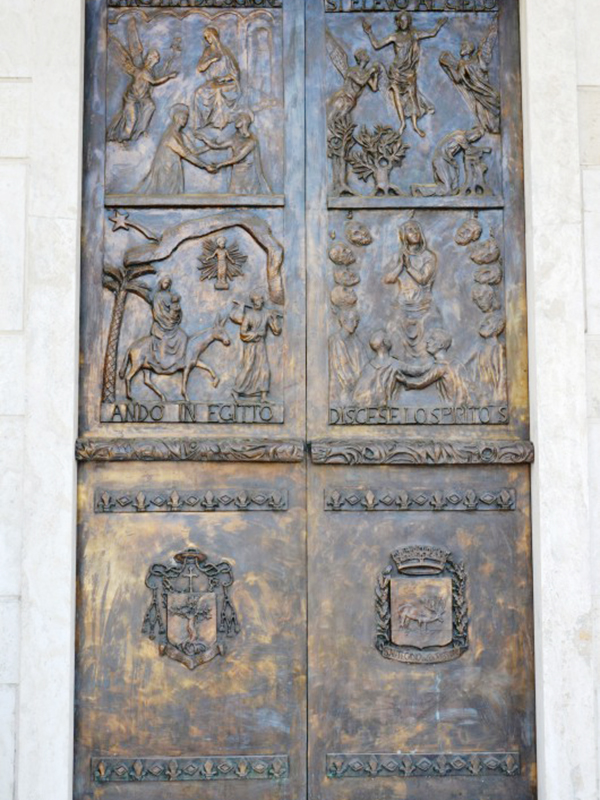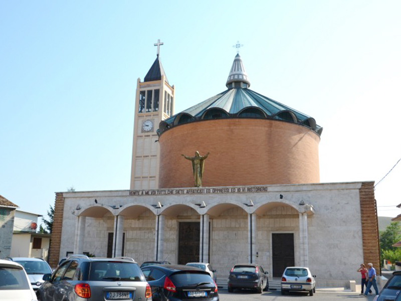Progettata nel 1948 dall'Architetto marchigiano Dante Tassotti (1912-1981), venne consacrata il 26 luglio 1953 dal Vescovo di S.Benedetto del Tronto-Ripatransone-Montalto Mons. Vincenzo Radicioni. Il bell'edificio è caratterizzato da un corpo di fabbrica cilindrico centrale in mattone rosso, mentre i tre portali d'ingresso frontali sono preceduti da un piccolo porticato. Alla parte posteriore del lato destro è poggiato un campanile a base quadrata che termina con una cuspide. I tre portali sono costituiti da altrettante porte in bronzo a due ante sulle quali sono raffigurate in bassorilievo scene iconografiche cristiane.