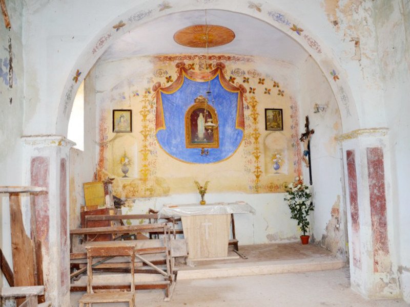 La costruzione è in pietra e malta ed il suo semplice portale d’ingresso ha architrave piano con l’espediente costruttivo dell’architrave “a timpano”, che nel teramano si incontra in costruzioni del XV e XVI secolo. Appena sotto al tetto, che è a capanna, si legge la data 1852, che presumibilmente è quella in cui venne ristrutturato il tetto stesso. La piccola aula che costituisce la chiesa, non più utilizzata da tempo e in stato di abbandono, ha pareti abbellite con affreschi relativamente recenti. Un arcone a tutto sesto precede la zona presbiteriale.