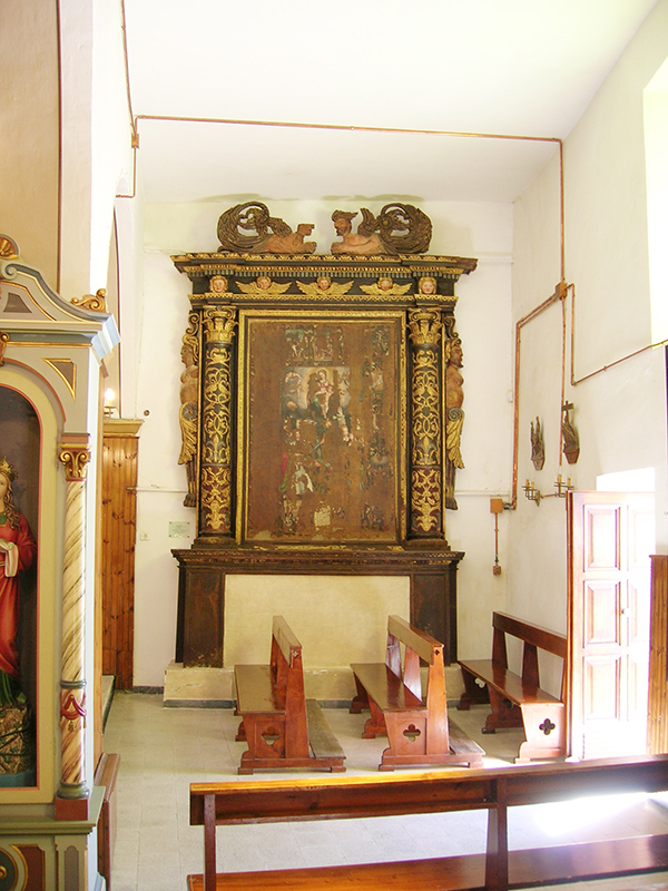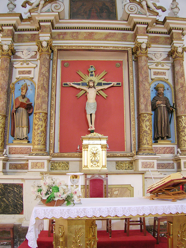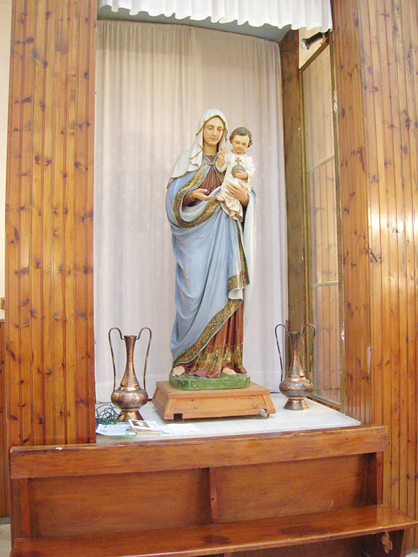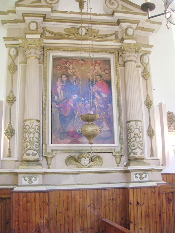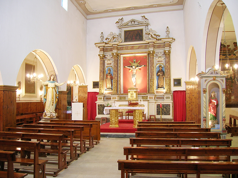 La chiesa parrocchiale, dedicata a Carlo Borromeo, è priva di facciata in quanto collegata con il vicino Palazzetto Baronale; l'ingresso, molto semplice, è sul fianco. L'interno è a tre navate, diviso da pilastri con arconi a tutto sesto; la navata centrale e la navatella di destra sono a soffitto piano, la navatella di sinistra ha la volta ribassata. L'altare maggiore, baroccheggiante, presenta colonne con rilievi e scanalature, campitelli ionici con testine di cherubini, trabeazione con dentelli, volute, angeli, frontoncino triangolare in alto. Al centro moderna statua del Sacro Cuore, ai lati nelle nicchie statue in legno di San Carlo e San Giovanni. Sulle pareti tele che raffigurano: la Vergine col Bambino, San Carlo Borromeo, la Vergine del Rosario, l'Annunciazione, la Pietà. In sagrestia si conserva un'antica statuetta medioevale in legno policromo raffigurante la Vergine in trono col Bambino: proviene dall'antica chiesa parrocchiale, distrutta.