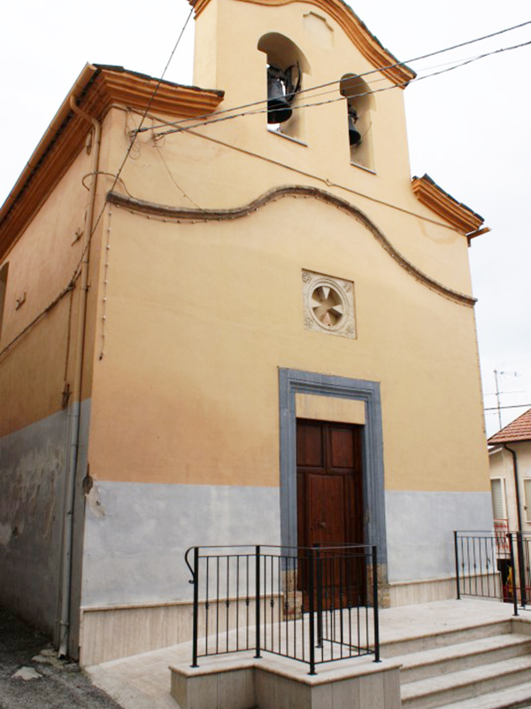 Originariamente dedicata a S. Niccolò e a Sant’Antonio da Padova, nel 1654 venne eretta a sede parrocchiale. E’ stata restaurata verso la fine del secolo scorso ed oggi si presenta con tetto a capanna interrotto sulla facciata con un campanile a vela che ospita due campane. Ha un semplice portale in pietra sormontato da un rosone, anch’esso in pietra, e da un cordolo curvilineo in laterizio che percorre la facciata in tutta la sua larghezza.