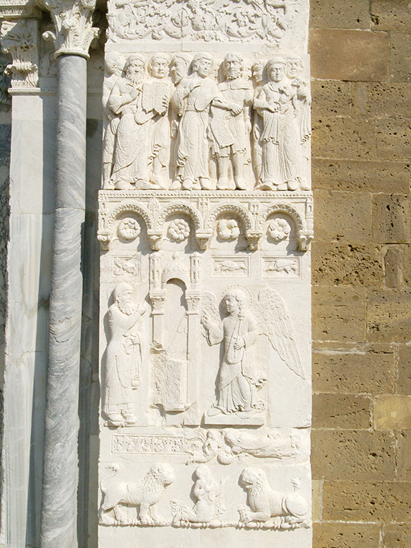 La tradizione vuole che la primitiva chiesa (VIII sec.) che ha dato origine all'abbazia di San Giovanni sorga sopra i resti di un tempio dedicato a Venere. La costruzione attuale è dovuta all'abate Oderisio II (1155-1204), sepolto, nel sarcofago murato sulla facciata principale. Della costruzione colpisce, innanzi tutto, il monumentale prospetto con il grande e ornato portale della Luna (sec. XIII) intorno ai cui stipiti quattro lastre di marmo bianco, scolpito a rilievo, raccontano la storia del Battista. All'interno la chiesa presenta la pianta basilicale, suddivisa in tre navate terminanti con absidi, da dodici pilastri a pianta quadrata che sorreggono archi variamente strutturati ad ogiva e a tutto sesto. Il presbiterio, sopraelevato rispetto al piano dell'aula, è incorniciato da un grandioso arco trionfale depresso a sesto acuto. È coperto, nella parte centrale da una doppia volta ad ogiva sottolineata da robusti costoloni in pietra, mentre quelle sopra gli spazi laterali sono a crociera. Nell'apertura dell'abside centrale è collocato l'altare, costituito da un'antica lastra di marmo. Sotto il presbiterio si stende la cripta suddivisa da colonne, in dieci campate ineguali con volte a crociera. Interessanti affreschi medioevali coprono i catini delle absidi, mentre sulla parete orientale è addossato un piccolo monumento funebre databile al secolo XIV. La visita si conclude nel chiostro formato da una galleria di ventinove trifore scandite da sessantotto colonnine senza base e con pulvini a stampella, variamente decorati a motivi fitomorfi e zoomorfi.