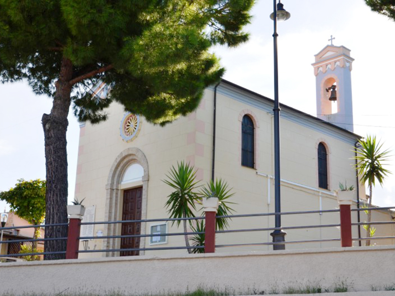 Venne costruita nel 1560 su progetto di Benedetto Romano, architetto che all’epoca era impegnato ad Atri per la ristrutturazione della Chiesa di S.Andrea. Venne restaurata tra il 1718 ed il 1820, ma crollò quasi completamente a causa del terremoto del 1843. Divenuta inagibile a causa dei danni subiti dal terremoto del 1884, venne ricostruita subito dopo e di recente è stata nuovamente restaurata. In facciata si apre un portale incorniciato in laterizio con arco a tutto sesto e lunetta. Si presenta con copertura a capanna e lungo ciascuno dei lati lunghi si aprono due finestroni alti e stretti, anch’essi con arco a tutto sesto. Dalla parete posteriore si alza un campanile a vela ad un solo fornice sormontato da piccola trabeazione.