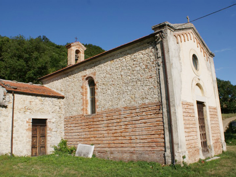 Con copertura a capanna, venne edificata nel 1935 in sostituzione di una chiesa poco lontana risalente al XVII secolo andata distrutta. In essa venne rimesso in opera il portale in pietra appartenuto al Monastero femminile di S.Giovanni a Scorzone e fatto realizzare nel 1530 dalla badessa Carmosina. L’architrave piano è sormontato da una lunetta con arco a tutto sesto, sulla cornice decorata del quale si trovano tre figure scolpite: la testa di un uomo a sinistra, quella di una donna a destra ed un drago con coda ritorta al centro, in corrispondenza della chiave dell’arco. Appena sotto le figure si legge “1530 - Questa porta fece fare dona(ta) a Scorzone et de Santo Johanne Carmosina bad(essa)”. In corrispondenza della parete posteriore un campanile a vela sorregge una campana, anch’essa si dice proveniente dallo stesso Monastero. L’interno è a vano unico e conserva un fonte battesimale del Settecento.