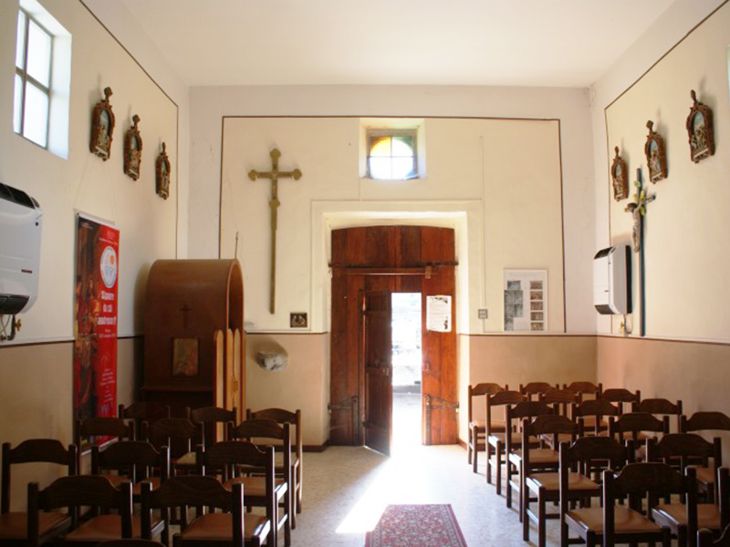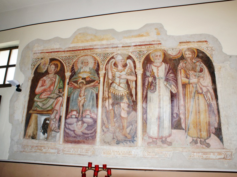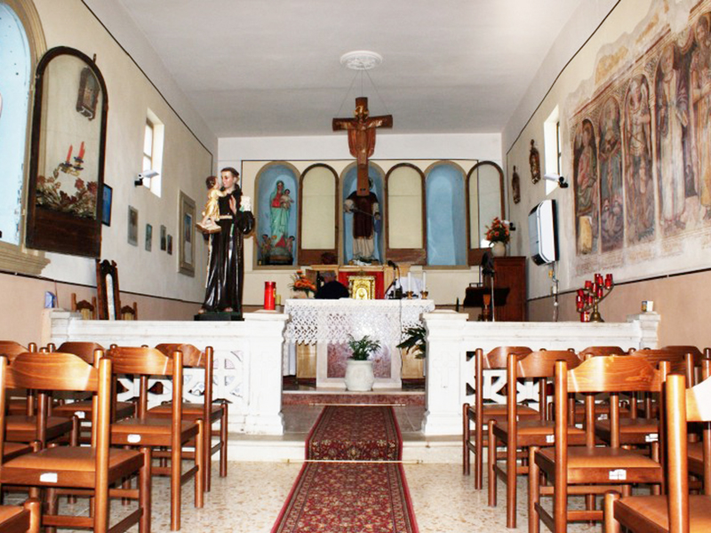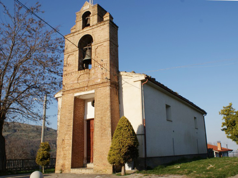 Originariamente edificata forse con parte di materiali appartenuti ad un antico santuario sul Monte Fano, nel 1930 è stata radicalmente ristrutturata così come ci appare oggi. Ha copertura a capanna ed un campanile completamente in laterizio è poggiato sulla facciata creando un portaletto per consentire l’ingresso e nel contempo un supporto per due campane di dimensioni differenti. L’interno, sulla cui parete destra sono tuttora visibili numerosi affreschi risalenti al 1630 raffiguranti immagini sacre, è ad aula unica priva di abside.