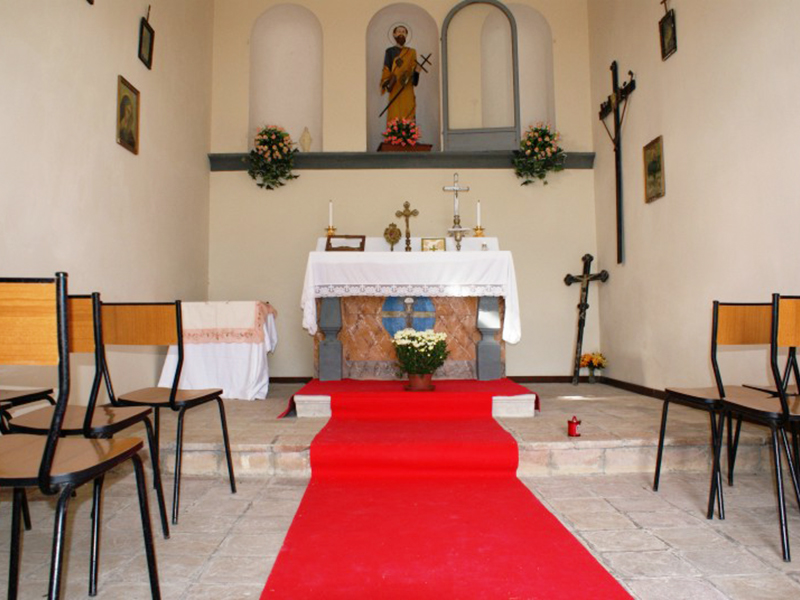 Si ha ragione di ritenere che la chiesa sia intitolata a S.Filippo. L’edificio è stato ricostruito intorno agli anni Sessanta del secolo scorso riutilizzando parzialmente materiali di un’antica chiesa medievale citata nei documenti come S.Filippo in Caleiano (da cui in seguito Galliano).